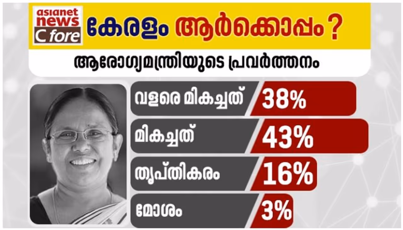 ഫലത്തിൽ 97 ശതമാനം പേരും നല്ല രീതിയിൽത്തന്നെയാണ് ആരോഗ്യമന്ത്രി പ്രവർത്തിച്ചതെന്ന് വിലയിരുത്തുന്നു. ആരോഗ്യമന്ത്രിയുടെ പ്രവർത്തനം സർക്കാരിന്റെ പ്രതിച്ഛായയെത്തന്നെ ഉയർത്തിയെന്ന് തന്നെ വിലയിരുത്താം.