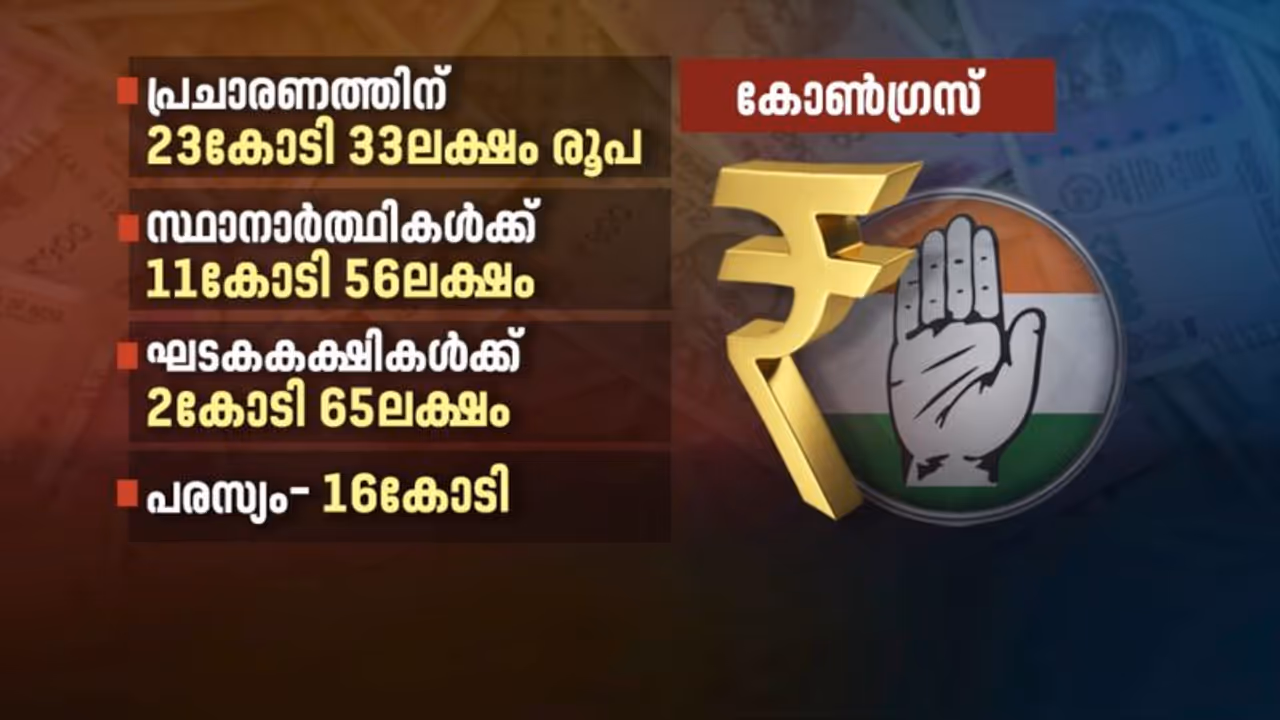 ആർ ബിന്ദുവിന് 20 ലക്ഷം, വീണാ ജോർജിന് 19 ലക്ഷം, ജെയ്ക്ക് സി തോമസിന് 16 ലക്ഷം എന്നിങ്ങനെ പോകുന്നു ആ കണക്കുകൾ. കോൺഗ്രസും ഇക്കാര്യങ്ങളിൽ ഒട്ടും പിന്നിലല്ല. 23 കോടി പ്രചാരണത്തിനും 11 കോടി സ്ഥാനാർത്ഥികൾക്കും 16 കോടി പരസ്യത്തിനും ചെലവഴിച്ചു. സ്ഥാനാർത്ഥികളിൽ ഏറ്റവും കൂടുതൽ തുക പാർട്ടി നൽകിയത് ത്രികോണപോരിൽ വിജയം നേടിയ ഷാഫി പറമ്പിലിന് വേണ്ടിയാണ്, 23 ലക്ഷം. തൃത്താലയിൽ പരാജയപ്പെട്ട വി ടി ബൽറാമിന് കിട്ടിയത് പതിനെട്ടര ലക്ഷമാണ്. എന്നാൽ, സ്റ്റാർ കാൻഡിഡേറ്റ് രമേശ് ചെന്നിത്തലക്ക് പാർട്ടി വിഹിതമായി അഞ്ച് ലക്ഷം മാത്രമാണ് ലഭിച്ചത്.