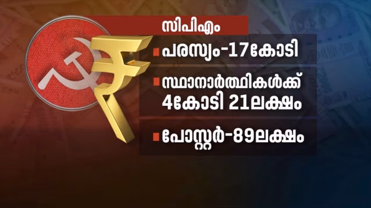 ഏറ്റവും വാശിയേറിയ നിയമസഭ അങ്കത്തിന് കേരളം സാക്ഷ്യം വഹിച്ചപ്പോൾ സംഭാവനകൾ കൂമ്പാരമായി, ഇതോടെ പ്രചാരണവും ഗംഭീരമായി. ഭരണകക്ഷിയായ സിപിഎമ്മിലേക്കാണ് ഏറ്റവും കൂടുതൽ പണമൊഴുകിയത് എന്നാണ് തെരഞ്ഞെടുപ്പ് കമ്മീഷന് ലഭിച്ച കണക്കുകളിൽ നിന്ന് വ്യക്തമാകുന്നത്. കൃത്യമായി പറഞ്ഞാൽ എത്തിയത് 58,86,38,762 രൂപയാണ്. ഇതിൽ പരസ്യത്തിന് വേണ്ടിയാണ് സിപിഎം 17 കോടിയും ചെലവഴിച്ചത്. സ്ഥാനാർത്ഥികൾക്ക് നൽകിയെന്ന് വ്യക്തമാക്കുന്നത് നാല് കോടി 21 ലക്ഷമാണ്. ബേപ്പൂരിൽ മുഹമ്മദ് റിയാസിന് 22 ലക്ഷമാണ് ചെലവിനായി പാർട്ടി നൽകിയത്.