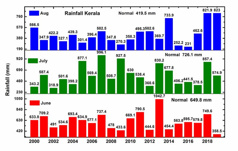 ഓഗസ്റ്റ് 26 വരെ ലഭിച്ചത് 196% കൂടുതൽ മഴയാണ്. 419.5 ലഭിക്കേണ്ട സ്ഥാനത്തു ഇതുവരെ ലഭിച്ചത് 823 മില്ലിമീറ്റർ. ഒരുശതമാനം അധിക മഴകേരളത്തിൽ ഇതുവരെ ലഭിച്ചു. കേരളത്തിൽ സാധാരണ ലഭിക്കേണ്ടത് 1742.3 മില്ലീലിറ്റര് മഴയാണെങ്കില് ഇതുവരെ 1754.8 മില്ലിമീറ്റര് മഴ ലഭിച്ചു.