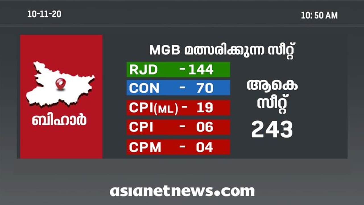 ആര്ജെഡി സീറ്റ് വാരിക്കോരി നൽകിയിട്ടും ബിഹാര് നിയമസഭയിലേക്ക് മെച്ചപ്പെട്ട പ്രകടനം കാഴ്ടവക്കാൻ കോൺഗ്രസിന് കഴിഞ്ഞിട്ടില്ലെന്ന സൂചനകളാണ് ആദയ ഘട്ടത്തിൽ പുറത്ത് വരുന്നത്.