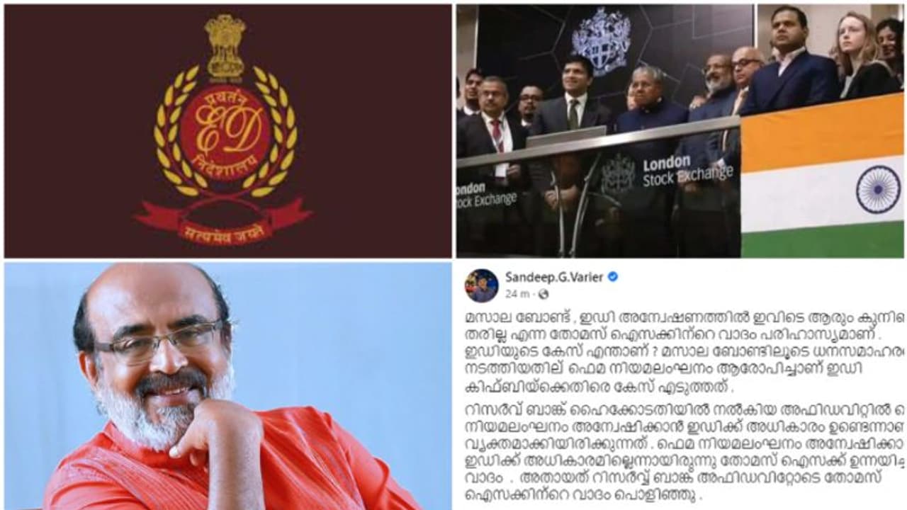ഇഡിയുടെ അന്വേഷണം ശക്തമാക്കാനുള്ള സാദ്ധ്യതകൾ മുൻ കൂട്ടി കണ്ട് നടത്തുന്ന ജല്പനങ്ങളാണ് തോമസ് ഐസക്കിന്റെ പ്രതികരണമെന്നും ബിജെപി മുന് സംസ്ഥാന വക്താവ് സന്ദീപ് വാര്യര്