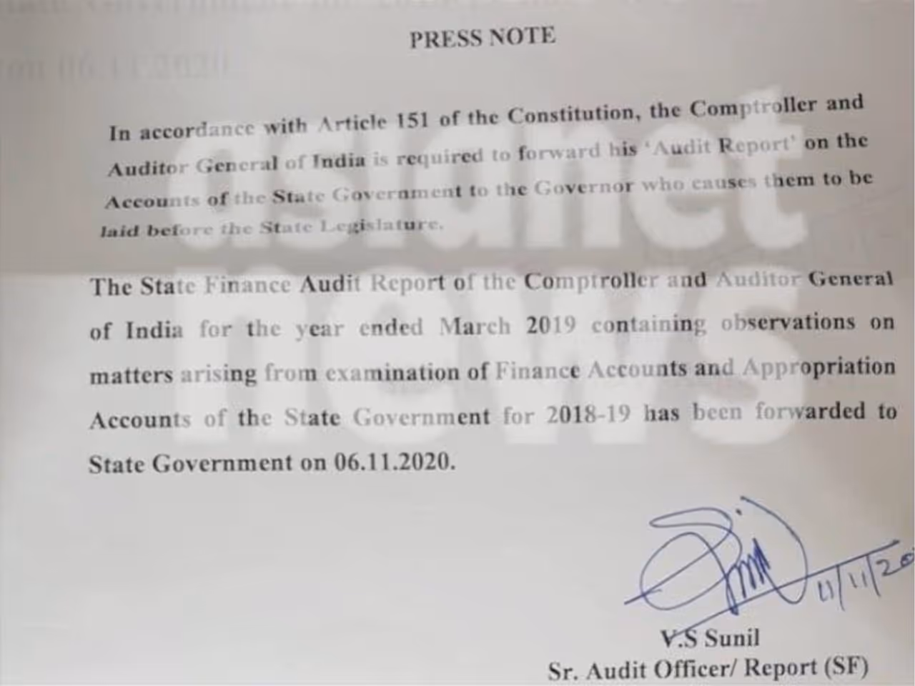 നവംബർ 14 ശനിയാഴ്ചയാണ് സിഎജി റിപ്പോർട്ടിനെതിരെ കടുത്ത വിമർശനവുമായി ധനമന്ത്രി വാർത്താസമ്മേളനം നടത്തിയത്. സിഎജി രാഷ്ട്രീയം കളിക്കുന്നുവെന്നാരോപിച്ചായിരുന്നു ധനമന്ത്രിയുടെ വിമർശനം. കരട് റിപ്പോർട്ടല്ല ഇത് സമ്പൂർണ്ണ റിപ്പോർട്ടാണെന്ന് ഏഷ്യാനെറ്റ് ന്യൂസിലെ ന്യൂസ് അവറിൽ രാഷ്ട്രീയ നിരീക്ഷകൻ ജോസഫ് സി മാത്യ അന്ന് വ്യക്തമാക്കിയിരുന്നു. എന്നാൽ ഇക്കാര്യം ധനമന്ത്രി ആവർത്തിച്ച് നിഷേധിച്ചു.