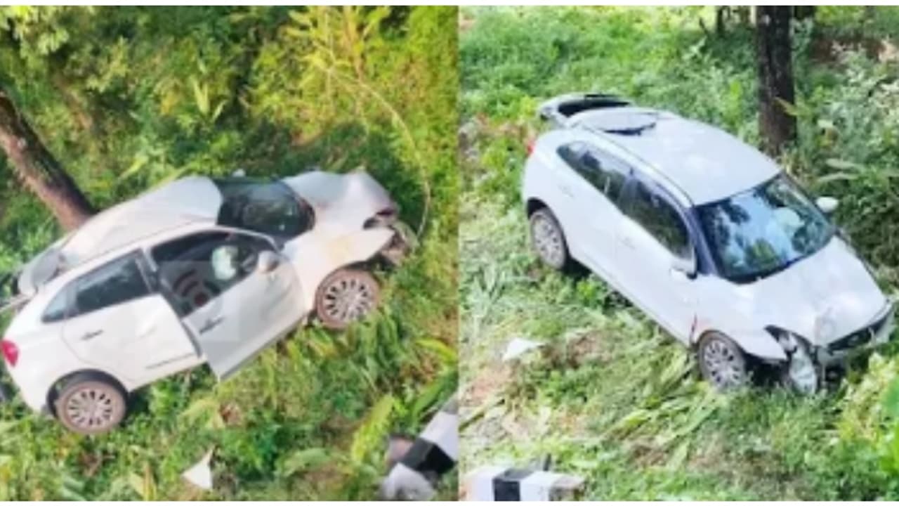 റോഡിന് സമീപത്തെ ഗാര്ഡ് സ്റ്റോണും ഇടിച്ചു തെറിപ്പിച്ചാണ് സമീപത്തെ താഴ്ചയിലുള്ള പറമ്പിലേക്ക് വാഹനം മറിഞ്ഞത്.