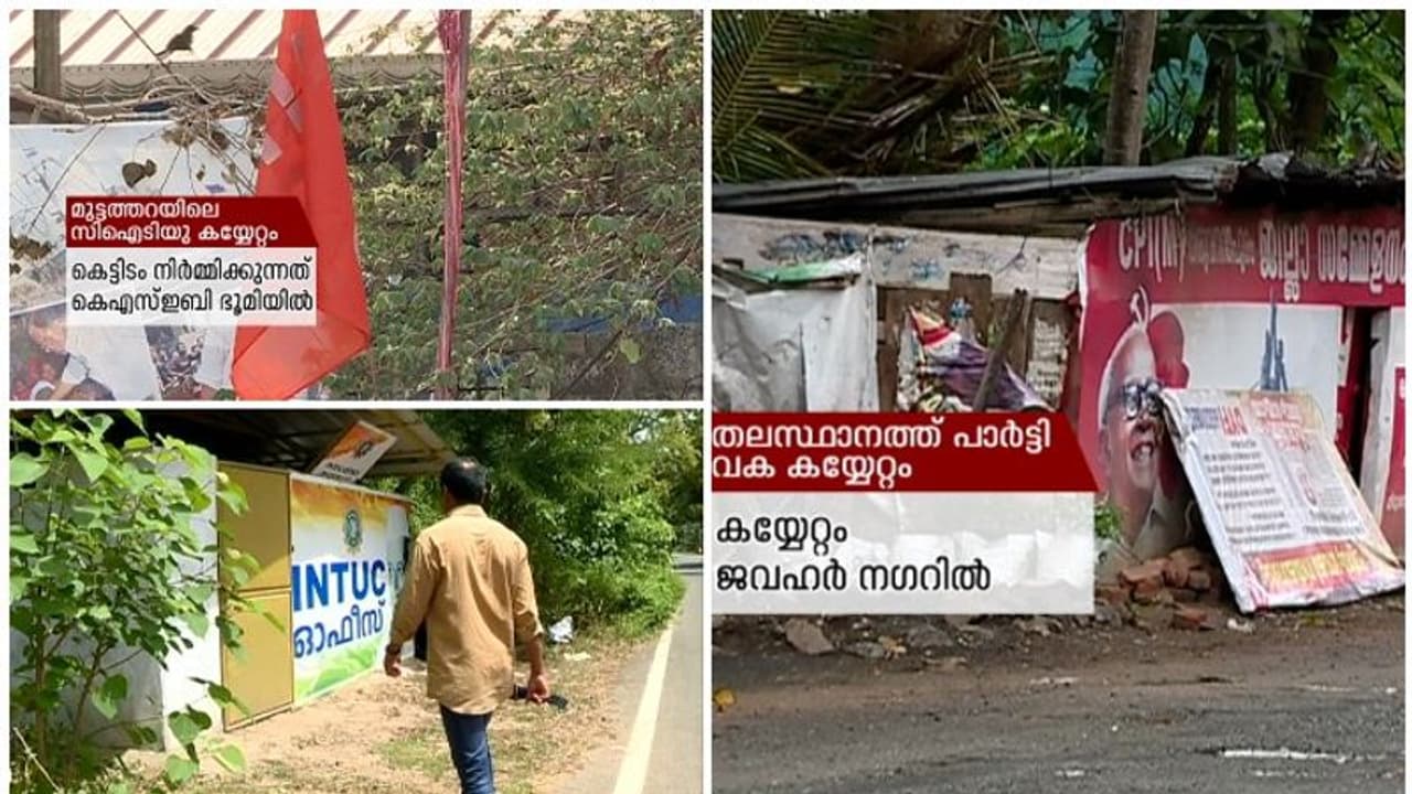 മുട്ടത്തറയിലെ സിഐടിയു ഓഫീസ് നിര്മിക്കുന്നതാകട്ടെ കെഎസ്ഇബി ഭൂമി കയ്യേറിയാണ്. റവന്യൂ വകുപ്പ് വിവാരവാകശ നിയമ പ്രകാരം നല്കുന്ന മറുപടിയനുസരിച്ച് സിഐടിയു അടക്കമുളള സംഘടനകളുടെ പേരില് വേറെയുമുണ്ട് കയ്യേറ്റങ്ങള്. കയ്യേറ്റങ്ങളെക്കുറിച്ച് സിഐടിയുവിന്റെ പ്രതികരണം ഇങ്ങനെ.