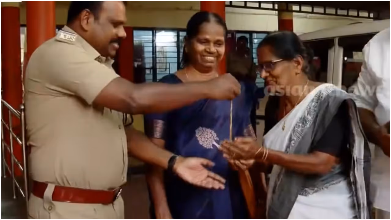 ഒരു മാല കളഞ്ഞു കിട്ടിയതായി വാട്സ് ആപ്പിൽ കണ്ടതോടെയാണ് ഷെർലി പൊലീസ് സ്റ്റേഷനിൽ അന്വേഷിച്ച് എത്തിയത്. പൊന്നുംവിലയുള്ള ആ മാല കൈമാറാൻ ശശികല നേരിട്ടെത്തി. പൊലീസ് സ്റ്റേഷൻ സുന്ദരമായ ആ കാഴ്ചയ്ക്ക് സാക്ഷ്യം വഹിക്കുകയും ചെയ്തു. ശശികലയ്ക്ക് ആയിരം നന്ദി പറഞ്ഞ ഷെർലി മുത്തവും സ്നേഹോപഹാരവും നൽകിയാണ് മാലയുമായി മടങ്ങിയത്.