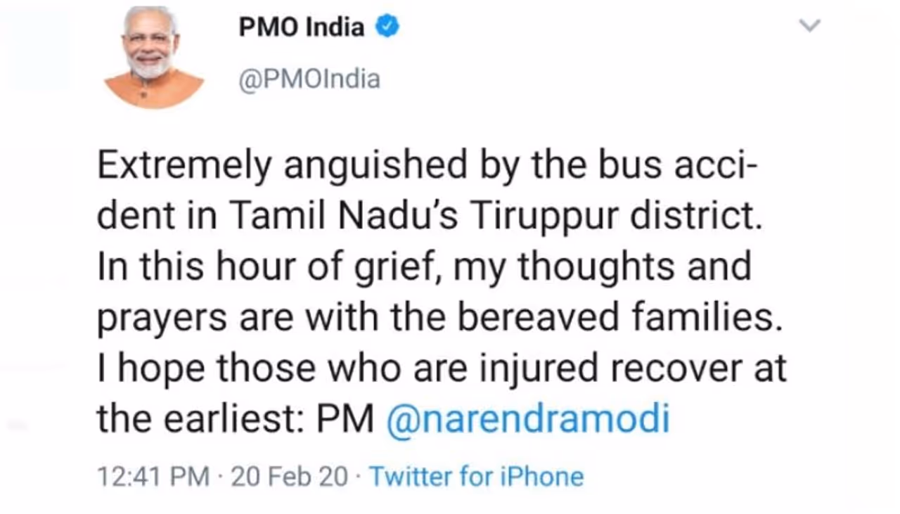 കുടുംബാംഗങ്ങളുടെ ദുഖത്തിൽ പങ്കുചേരുന്നു, പരിക്ക് പറ്റിയവര് എത്രയും പെട്ടെന്ന് സുഖം പ്രാപിക്കട്ടെ എന്ന് പ്രധാനമന്ത്രി