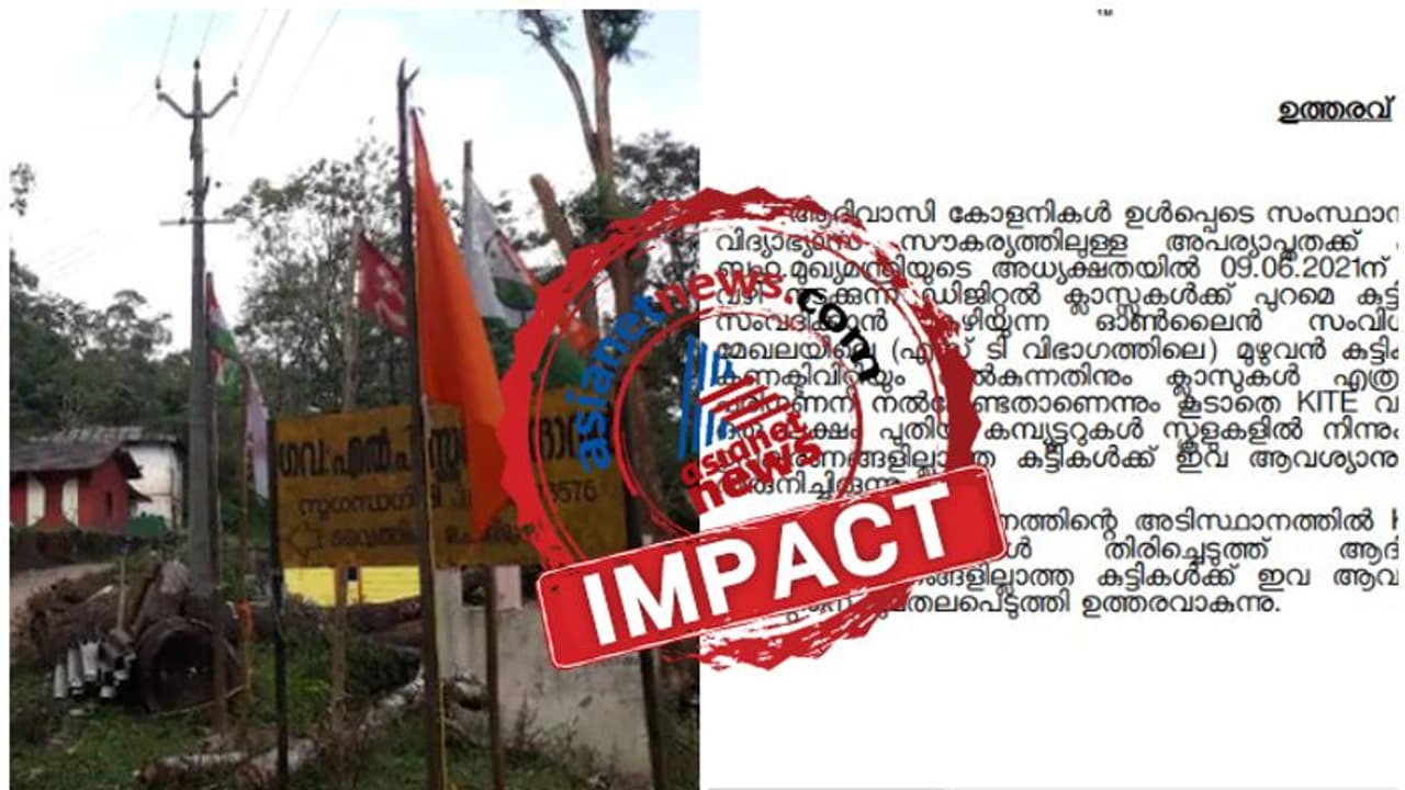 കൊവിഡ് പ്രതിരോധത്തിന്റെ ഭാഗമായി ഓണ്ലൈന് ക്ലാസ് നടപ്പാക്കി ഒരു വര്ഷം പിന്നിടുമ്പോഴും എസ്ടി വിഭാഗങ്ങളിലെ കുട്ടികള്ക്ക് ക്ലാസില് പങ്കെടുക്കാന് കുട്ടികള് ബുദ്ധിമുട്ട് നേരിടുന്നതിനെക്കുറിച്ച് ഏഷ്യാനെറ്റ് ന്യൂസ് റിപ്പോര്ട്ട് ചെയ്തിരുന്നു. ഇതിന് പിന്നാലെയാണ് സര്ക്കാര് നടപടി.