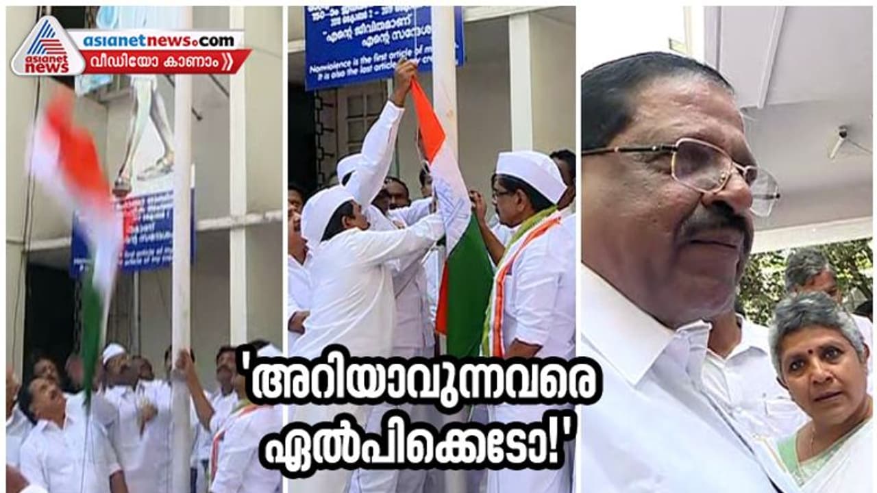 പതാക നിവരാതിരുന്നപ്പോൾത്തന്നെ കെപിസിസി പ്രസിഡന്റ് മുല്ലപ്പള്ളിയുടെയും ചെന്നിത്തലയുടെയും ഉമ്മൻചാണ്ടിയുടെയും മുഖത്ത് അതൃപ്തിയും രോഷവും പ്രകടമായിരുന്നു.