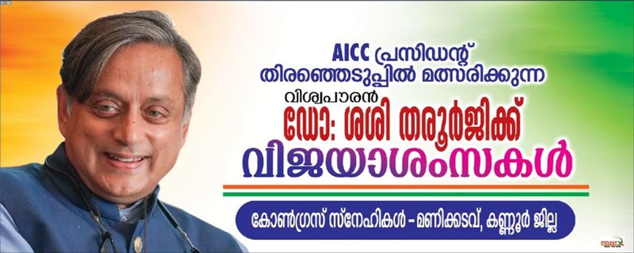 കോൺഗ്രസിനെ നയിക്കാനും കോൺഗ്രസിന്റെ ഭാവിക്കും ശശി തരൂര് എഐസിസി പ്രസിഡന്റാകണമെന്നാണ് ഒരു വിഭാഗം ആവശ്യപ്പെടുന്നത്. മുൻ പ്രതിപക്ഷ നേതാവ് രമേശ് ചെന്നിത്തല അടക്കമുള്ള നേതാക്കൾ മല്ലികാര്ജുന ഖാര്ഗെയെ അനുകൂലിച്ച് രംഗത്തെത്തിയതിന് പിന്നാലെയാണ് സംസ്ഥാനത്തിന്റെ പലയിടത്തും പ്രവര്ത്തകര് തരൂരിനെ പിന്തുണച്ച് ഫ്ലക്സുകളും പ്രകടനങ്ങളും നടത്തുന്നതെന്നത് ശ്രദ്ധേയമാണ്. നേരത്തെ കോട്ടയത്തിന്റെ പലഭാഗത്തും ശശി തരൂര് അനുകൂല പോസ്റ്ററുകളും പ്രത്യക്ഷപ്പെട്ടിരുന്നു.
