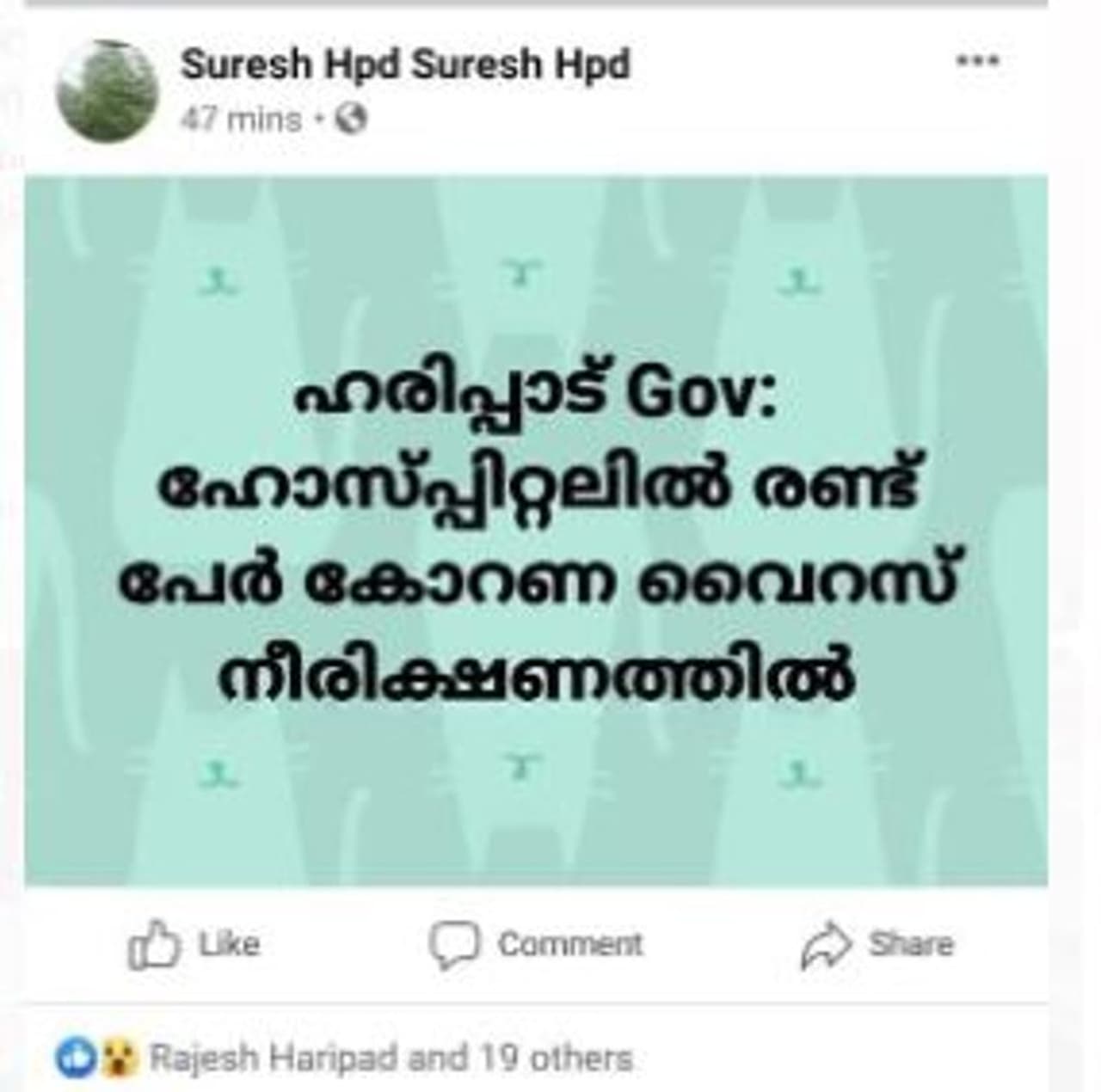 എറണാകുളം പൊലീസ് അസിസ്റ്റന്റ് കമ്മീഷ്ണര് കെ.ലാല്ജിയുടെ പേരില് വ്യാജസന്ദേശം പ്രചരിപ്പിച്ചതിനാണ് ഒരു കേസ്. കോവിഡ് 19 വൈറസ്സുമായി ബന്ധപ്പെട്ട് അസുഖങ്ങള് ഒന്നുംതന്നെ ഇല്ലെന്നും സര്ക്കാര് മന:പൂര്വ്വം പ്രശ്നങ്ങള് ഉണ്ടാക്കുന്നതാണെന്നും കാണിച്ച് സാമൂഹിക മാധ്യമങ്ങളില് വീഡിയോ പ്രചരിപ്പിച്ചതിന് ജേക്കബ് വടക്കാഞ്ചേരിയെ പ്രതിയാക്കിയും കേസെടുത്തിട്ടുണ്ട്.