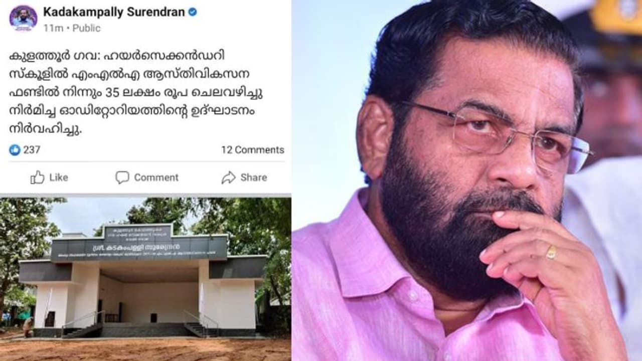 മന്ത്രി കടകംപള്ളി സുരേന്ദ്രൻ സ്വന്തം മണ്ഡലത്തിൽ എംഎൽഎ ഫണ്ട് ഉപയോഗിച്ച് നിർമ്മിച്ച ഓഡിറ്റോറിയമാണ് വിവാദത്തിലായത്. 1200 സ്ക്വയർ ഫീറ്റിൽ ഓപ്പൺ ഓഡിറ്റോറിയവും രണ്ട് ഗ്രീൻ റൂമുകളും ശുചിമുറികളുമടക്കമുള്ള കെട്ടിടത്തിനാണ് 35 ലക്ഷം കാണിച്ചിരിക്കുന്നത്. ഷീറ്റ് കൊണ്ടാണ് ഓപ്പൺ സ്റ്റേജിന് മേൽക്കൂര, നിലത്ത് സിമന്റ് ഇട്ടിരിക്കുന്നു.