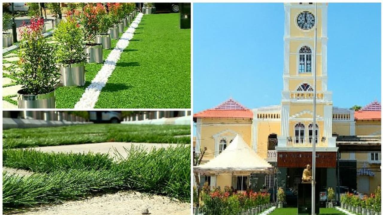 തൃശ്ശൂര്: സമ്പൂര്ണ പ്ലാസ്റ്റിക് നിരോധനം നടപ്പിലാക്കിയ തൃശ്ശൂർ കോർപ്പറേഷന്റെ (Thrissur Municipal Corporation) മുറ്റത്ത് പ്ലാസ്റ്റിക് പുൽത്തകടി വച്ചതിനെച്ചൊല്ലി വിവാദം. ശതാബ്ദിയുടെ ഭാഗമായ നവീകരണത്തിലാണ് മരങ്ങൾ വെട്ടിമാറ്റി പ്ലാസ്റ്റിക് പുൽത്തകിടി വച്ചത്. ഇതിനെതിരെ പ്രതിപക്ഷം രംഗത്തെത്തി. നല്ല ഒന്നാന്തരം ഒറിജിനല് പൂന്തോട്ടം വെട്ടിമാറ്റി ലക്ഷങ്ങൾ ചിലവിട്ട് പ്ലാസ്റ്റിക് പുല്ല് എത്തിച്ചത് ശരിയായില്ലെന്നാണ് പ്രതിപക്ഷത്തിന്റെ ആരോപണം.