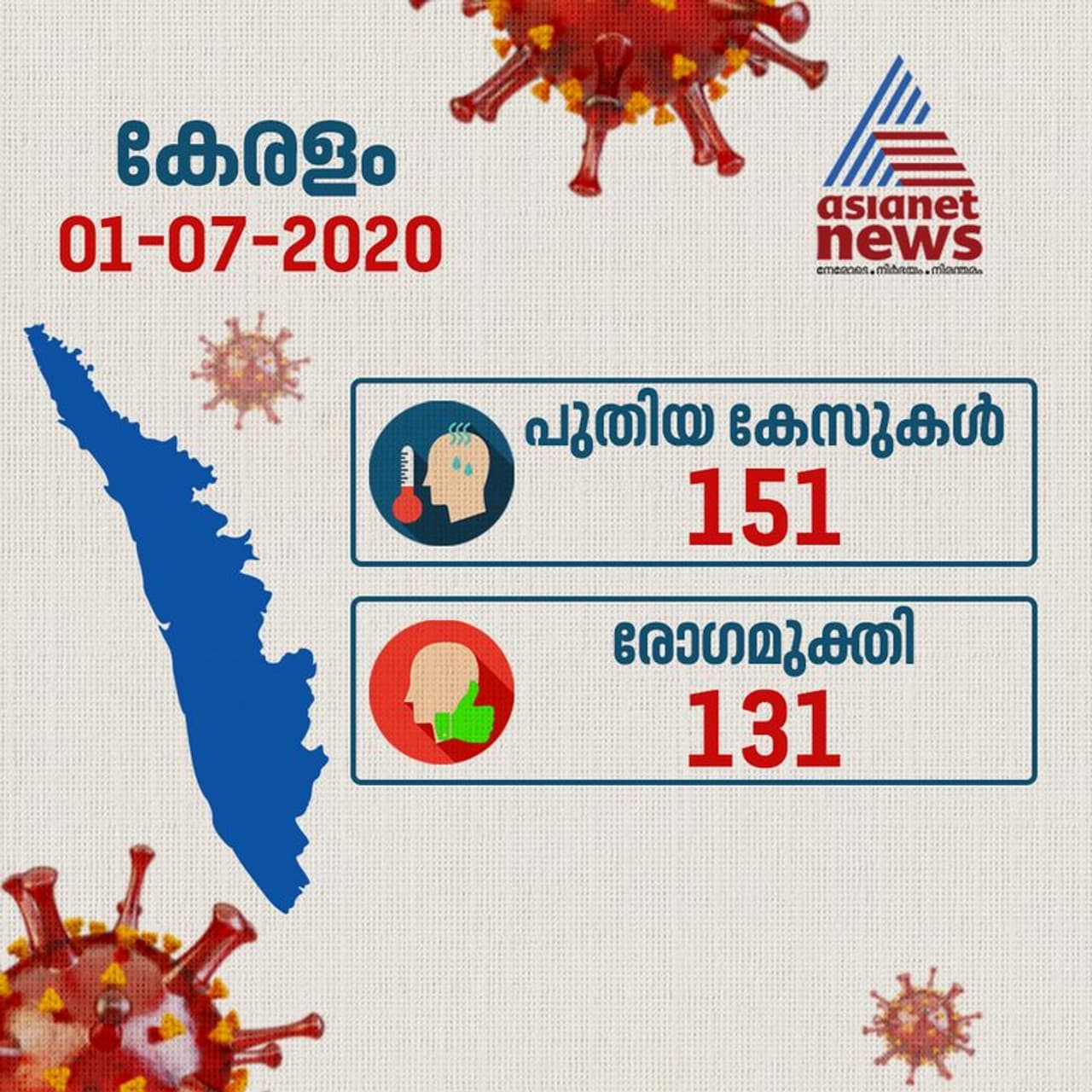 തിരുവനന്തപുരം: സംസ്ഥാനത്ത് ഇന്ന് 151 പേർക്ക് കൊവിഡ്. 131 പേർക്ക് രോഗമുക്തിയുമുണ്ടായി. ഇന്ന് പുതുതായി രോഗബാധിതരായവരിൽ 86 പേർ വിദേശത്ത് നിന്ന് വന്നവരാണ്. 51 പേർ ഇതരസംസ്ഥാനങ്ങളിൽ നിന്ന് വന്നതും. 13 പേർക്ക് സമ്പർക്കം മൂലമാണ് രോഗമുണ്ടായത്.
