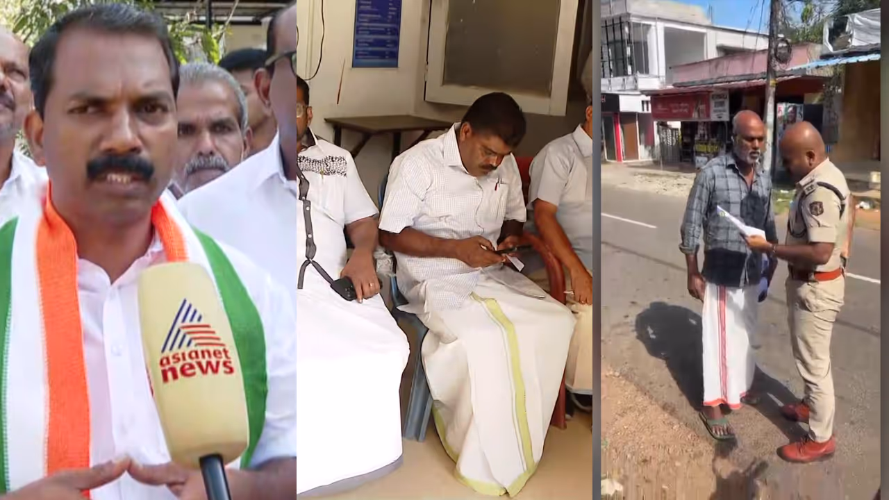 പത്തനംതിട്ട: അടൂരിലെ യുഡിഎഫ് സ്ഥാനാർഥി സി വി ശാന്തകുമാറിനെ കൊലക്കേസ് പ്രതിയാക്കി ലഘുലേഖ വിതരണം ചെയ്ത സംഭവത്തിൽ മൂന്നു പിടിയിലായി. സിപിഐ പ്രവര്ത്തകരാണ് പിടിയിലായതെന്ന് കോണ്ഗ്രസ് ആരോപിച്ചു. പിടികൂടിയവരെ വിട്ടയക്കണമെന്നാവശ്യപ്പെട്ട് പൊലീസ് സ്റ്റേഷനിൽ ചിറ്റയം ഗോപകുമാറെത്തി. ചിറ്റയം ഗോപകുമാറും നേതാക്കളും സ്റ്റേഷനിൽ കുത്തിയിരുന്ന് പ്രതിഷേധിക്കുകയാണ്. കോൺഗ്രസ് സ്ഥാനാർഥിയായ ശാന്തകുമാർ കൊലക്കേസ് പ്രതിയെന്ന് പറഞ്ഞുള്ള വ്യാജ നോട്ടിസ് വിതരണം ചെയ്യുന്നതിനിടെയാണ് മൂന്നുപേര് പിടിയിലായത്. സംഭവുമായി ബന്ധപ്പെട്ട് അടൂർ പൊലീസ് സ്റ്റേഷനിൽ രണ്ടുപേരും ഏനാത്ത് പൊലീസ് സ്റ്റേഷനിൽ ഒരാളും പിടിയിലായി. പറക്കോട് , മണ്ണടി ഭാഗങ്ങളിൽ നിന്നാണ് പിടിയിലായത്. പ്രതിഷേധവുമായി കോൺഗ്രസ് പ്രവർത്തകരും രംഗത്തെത്തി. എൽഡിഎഫ് പ്രവര്ത്തകരാണ് ഇത്തരം നോട്ടീസ് അടിച്ച് വിതരണം ചെയ്യുന്നതെന്നാരോപിച്ചാണ് കോണ്ഗ്രസ് പ്രതിഷേധം.ആര്ഡി ഓഫീസിൽ യുഡിഎഫ് സ്ഥാനാര്ത്ഥി വി ശാന്തകുമാറിന്റെ നേതൃത്വത്തിൽ കോണ്ഗ്രസ് പ്രവര്ത്തകര് പ്രതിഷേധവുമായെത്തി.