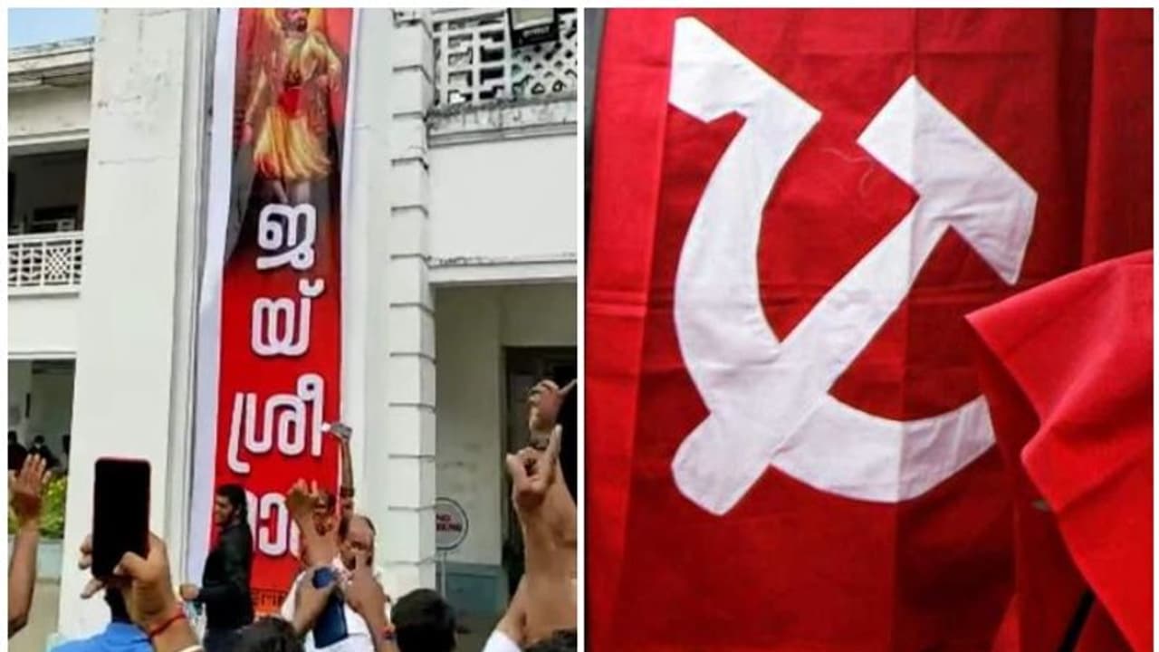 പാലക്കാട്: തദ്ദേശ തെരഞ്ഞെടുപ്പ് വോട്ടെണ്ണൽ ദിനത്തിൽ പാലക്കാട് നഗരസഭാ മന്ദിരത്തിൽ ബിജെപി പ്രവർത്തകർ ജയ് ശ്രീറാം ഫ്ലക്സ് തൂക്കിയതിനെതിരെ പരാതിയുമായി സിപിഎം. ഭരണഘടനാ സ്ഥാപനമായ മുനിസിപ്പൽ ഓഫീസിന് മുകളിൽ കയറി ഹിന്ദുത്വ മുദ്രാവാക്യം മുഴക്കുകയും 'ജയ് ശ്രീറാം' എന്ന ബാനർ ചുവരിൽ വിരിക്കുകയും ചെയ്തത് ബിജെപി നേതാക്കളുടെ അറിവോടെ സംഘപരിവാർ പ്രവർത്തകരെ ഉപയോഗിച്ചാണെന്ന് ടൗൺ സൗത്ത് പൊലീസിൽ നൽകിയ പരാതിയിൽ സിപിഎം ആരോപിച്ചു.