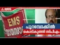 തെരഞ്ഞെടുപ്പ് കാലത്ത് കെട്ടിയ എല്ഡിഎഫിന്റെ താല്ക്കാലിക ഓഫീസ് ഇന്ന് ഇഎംഎസ് വായന ശാലയായി പരിണമിച്ചിരിക്കുന്നു. സൈനികനായ കേണല് പി എം കുറുപ്പിന്റെ വീടിനു മുന്വശത്തെ പുറമ്പോക്കാണ് പാര്ട്ടിക്കാര് കയ്യേറി കൈവശപ്പെടുത്തിയത്.
