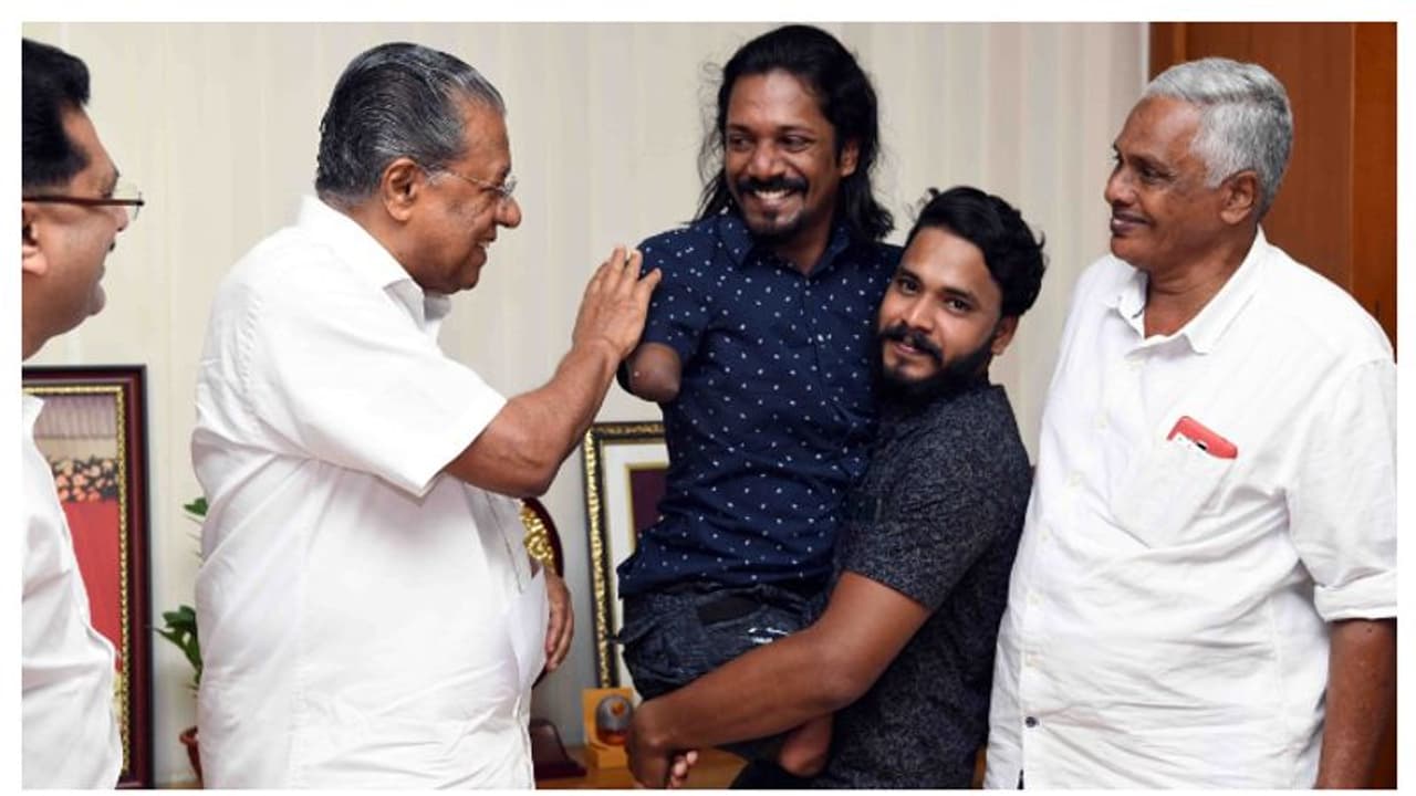 ഭിന്നശേഷിക്കാരനായ ഒരു ചെറുപ്പക്കാരനെ എടുത്തുപൊക്കി ചിലര് രാവിലെ വന്നു. മന്ത്രി കെ.ടി ജലീലും ഒപ്പമുണ്ടായിരുന്നു. മോട്ടിവേഷന് ക്ലാസെടുത്ത് ജീവിതം മുന്നോട്ടുകൊണ്ടുപോകുന്ന മലപ്പുറം പൂക്കോട്ടൂര് സ്വദേശി ഷിഹാബുദ്ദീനെ ബാപ്പയും അനുജനും എടുത്ത് ചേമ്പറില് എത്തിക്കുകയായിരുന്നു. താന് കൈകാര്യം ചെയ്ത ക്ലാസുകളിലൂടെ ലഭിച്ച തുകയില് നിന്ന് മാറ്റിവെച്ച വിഹിതം ദുരിതാശ്വാസ നിധിയിലേക്ക് നല്കാനാണ് ഷിഹാബുദ്ദീന് തന്റെ വയ്യായ്ക വകവെക്കാതെ എത്തിയത്.