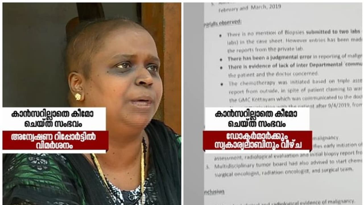 അര്ബുദമില്ലാത്ത രജനി എന്ന രോഗിക്ക് കീമോ ചെയ്ത സംഭവം വിവാദമായതിനെ തുടര്ന്നാണ് ഡോക്ടര് കെ വി വിശ്വനാഥൻ അധ്യക്ഷനായ സമിതി അന്വേഷണം നടത്തിയത്.