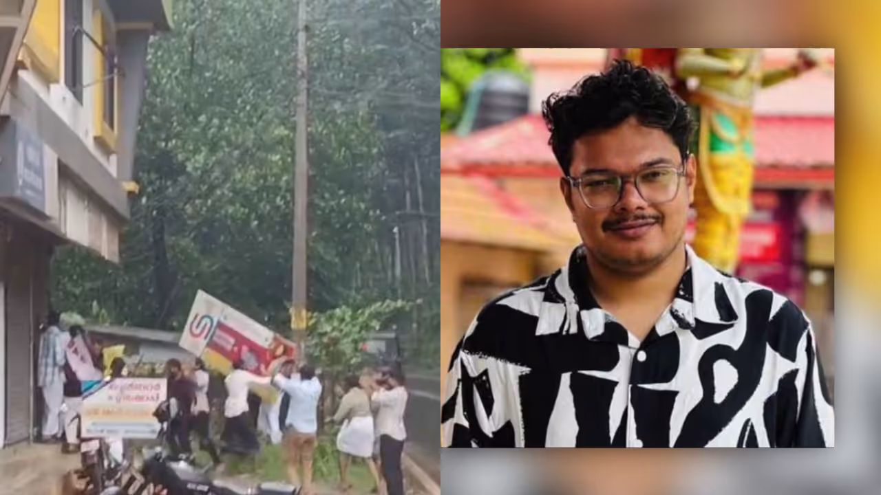 അനന്തു അജിയുടെ ആത്മഹത്യയില് ആരോപണം നേരിടുന്ന നിധീഷ് മുരളീധരന്റെ കട ഡിവൈഎഫ്ഐ പ്രവർത്തകർ അടിച്ച് തകർത്തു