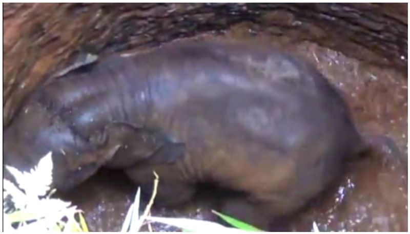 ഒടുവിൽ മണ്ണ് വിരിച്ച് വഴിയായൊരുക്കി. മണിക്കൂറുകൾ നീണ്ട കാത്തിരിപ്പിനൊടുവിൽ കുട്ടിയാന കരയ്ക്ക് കയറി.