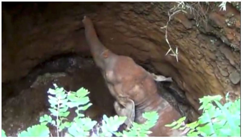 വലിയ ശബ്ദം കേട്ടാണ് വീട്ടുകാരും നാട്ടുകാരും ഓടിക്കൂടിയത്. നോക്കുമ്പോൾ പൊട്ടക്കിണറ്റിൽ കിടന്ന് വട്ടം കറങ്ങുന്ന ആനക്കുട്ടി
