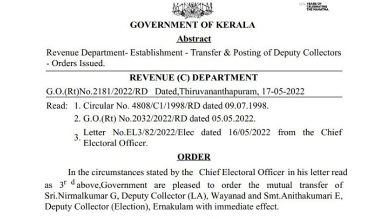 കൊച്ചി: യുഡിഎഫിന്റെ (UDF) പരാതിയുടെ അടിസ്ഥാനത്തില് എറണാകുളം ജില്ലയിലെ തെരഞ്ഞെടുപ്പ് ഡെപ്യൂട്ടി കളക്ടറെ (Deputy collector) മാറ്റി. അനിത കുമാരിയെ വയനാട്ടിലേക്കാണ് മാറ്റിയത്. വയനാട് ഡെപ്യൂട്ടി കളക്ടർ നിർമൽ കുമാറിനാണ് പുതിയ ചുമതല. തെരഞ്ഞെടുപ്പ് ഡെപ്യൂട്ടി കളക്ടർക്കെതിരെ യുഡിഎഫ് മുഖ്യ തെരഞ്ഞെടുപ്പ് ഓഫീസർക്ക് പരാതി നൽകിയിരുന്നു. തൃക്കാക്കരയിലെ വോട്ടർ പട്ടികയുമായി ബന്ധപ്പെട്ടാണ് യുഡിഎഫ് തെരഞ്ഞെടുപ്പ് കമ്മീഷന് പരാതി നൽകിയത്. യുഡിഎഫ് കൂട്ടിച്ചേർക്കാൻ നൽകിയ പുതിയ വോട്ടുകളിൽ ഭൂരിഭാഗവും തള്ളി എന്നായിരുന്നു യുഡിഎഫിന്റെ ആക്ഷേപം.