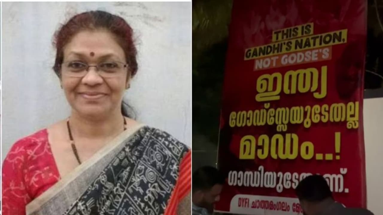 കോഴിക്കോട്: ഗോഡ്സെയെ പ്രകീര്ത്തിച്ചുള്ള കമന്റ് ഫേസ്ബുക്കില് ഇട്ട എന്ഐടി അധ്യാപിക ഷൈജ ആണ്ടവനെതിരെ പ്രതിഷേധവുമായി ഡിവൈഎഫ്ഐ. വീടിനു മുമ്പിൽ ഡിഎഫ്ഐ പ്രവര്ത്തകര് ഫ്ലക്സ് സ്ഥാപിച്ചാണ് പ്രതിഷേധിച്ചത്. ഇന്ന് രാത്രിയോടെ ഷൈജ താമസിക്കുന്ന ചാത്തമംഗലത്തെ വീടിന് മുന്നിലിലെ മതിലിലാണ് വലിയ ഫ്ലക്സ് സ്ഥാപിച്ചിരിക്കുന്നത്." ഇത് ഗാന്ധിയുടെ രാഷ്ട്രമാണ് ഗോഡ്സേയുടെതല്ല മാഡം" എന്ന് ഇംഗ്ലീഷിലും മലയാളത്തിലുമെഴുതിയ ഫ്ലക്സ് ആണ് ഡിവൈഎഫ്ഐ ചാത്തമംഗലം മേഖല കമ്മിറ്റിയുടെ നേതൃത്വത്തില് സ്ഥാപിച്ചത്.