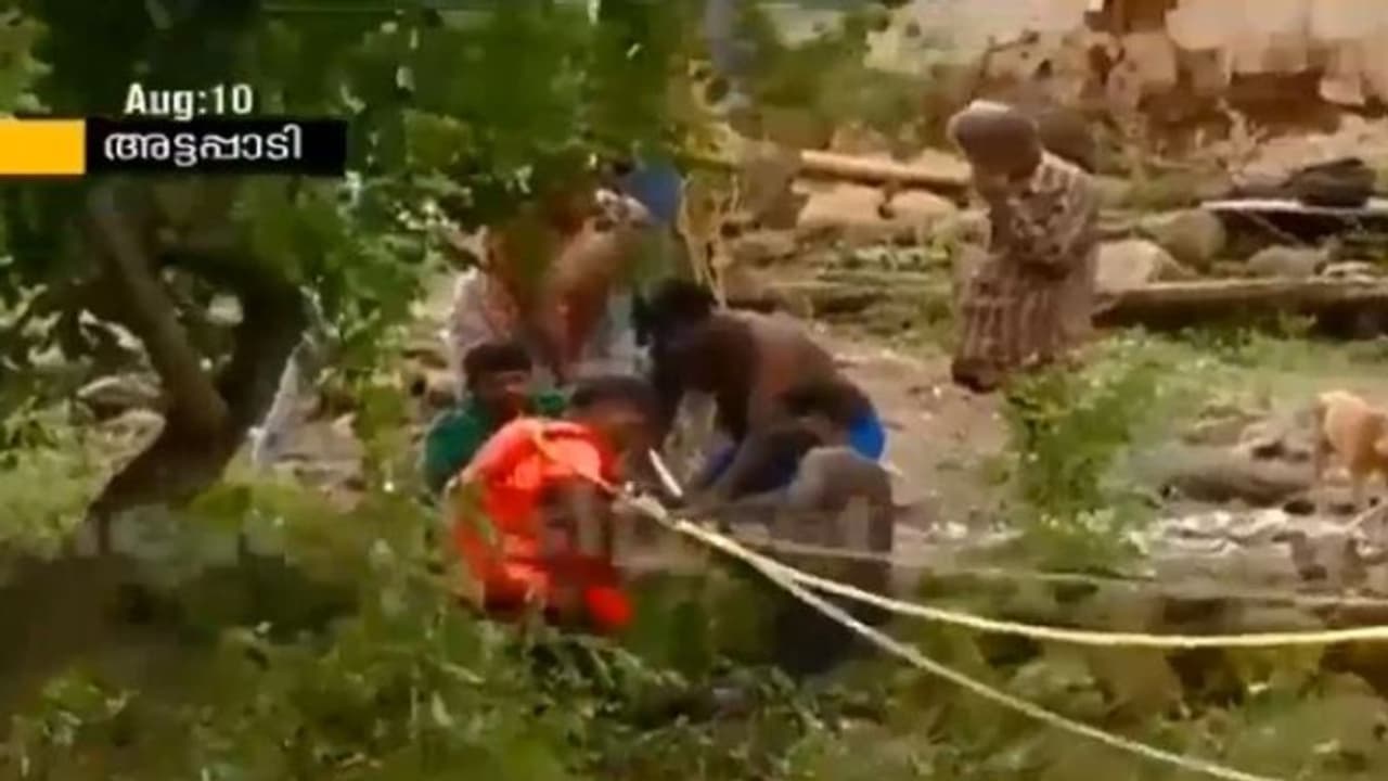 അട്ടപ്പാടിയിലെ ഊരില് ഒറ്റപ്പെട്ട യുവതിയെ അതിസാഹസികമായി രക്ഷപ്പെടുത്തുന്നു