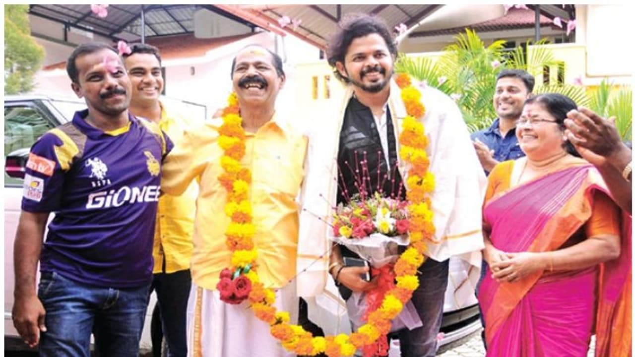 ഇടപ്പള്ളിയിലെ വീട്ടിലേക്ക് ഭാര്യയ്ക്കും മക്കൾക്കുമൊപ്പമെത്തിയ ശ്രീശാന്തിനെ അച്ഛൻ ശാന്തകുമാരൻ നായർ മാലയിട്ട് വരവേറ്റു. ആറ് കൊല്ലത്തെ കാത്തിരിപ്പിനൊടുവിൽ നീതിപീഠം കനിഞ്ഞെന്ന് ശ്രീശാന്ത്