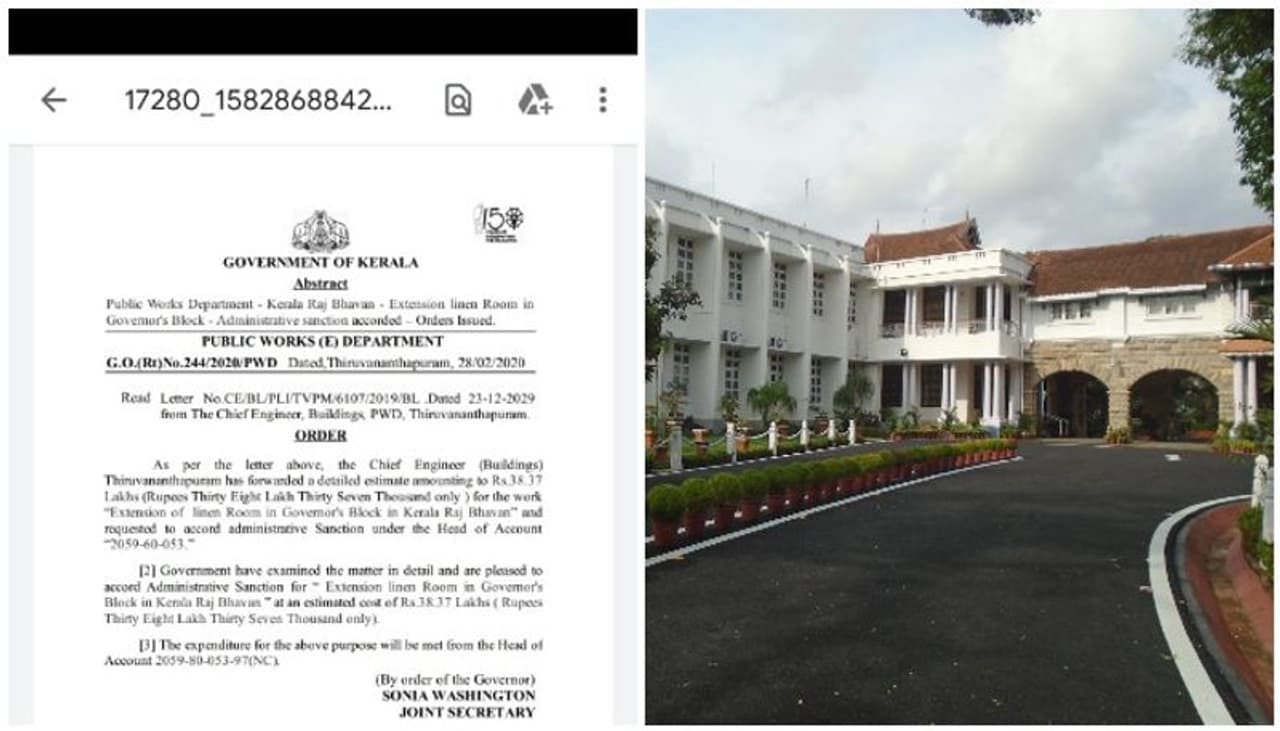 ഒരു വശത്ത് സാമ്പത്തിക ഞെരുക്കം പറയുന്നതിനിടെയാണ് രാജ് ഭവൻ മോടികൂട്ടാനും ലക്ഷങ്ങൾ അനുവദിച്ച് സര്ക്കാര് ഉത്തരവ്.