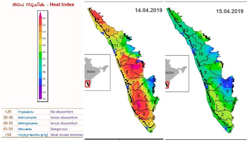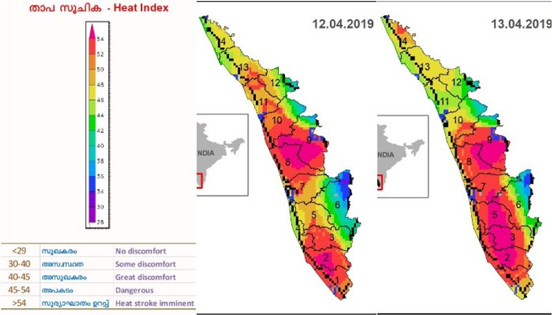 35 ഡിഗ്രി സെൽഷ്യസ് ചൂടേയുള്ളൂ എന്ന് കരുതി വെയിലത്തേയ്ക്കിറങ്ങിയാൽ പണി കിട്ടുമെന്നർത്ഥം! അന്തരീക്ഷത്തിലെ ഈർപ്പം കൂടി കണക്കിലെടുത്താൽ നാൽപ്പതിലധികം ഡിഗ്രി ചൂട് അനുഭവപ്പെടാനുള്ള സാധ്യതയുണ്ട്. കേരളത്തിന്റെ തീരപ്രദേശങ്ങളിലുള്ളവർ കൂടുതൽ ശ്രദ്ധിക്കണം. കാരണം തീരങ്ങളിൽ ഈർപ്പം വളരെക്കൂടുതലാണ്. നിങ്ങളുടെ സ്ഥലത്തെ യഥാർത്ഥ താപനിലയും ഈർപ്പവും ചേർത്ത് എത്രയാണ് അനുഭവപ്പെടാൻ സാധ്യതയുള്ള ചൂട് എന്ന് കണക്കു കൂട്ടാൻ ദുരന്ത നിവാരണ അതോറിറ്റി ഒരു താപ സൂചികയും പുറത്തിറക്കിയിട്ടുണ്ട്.