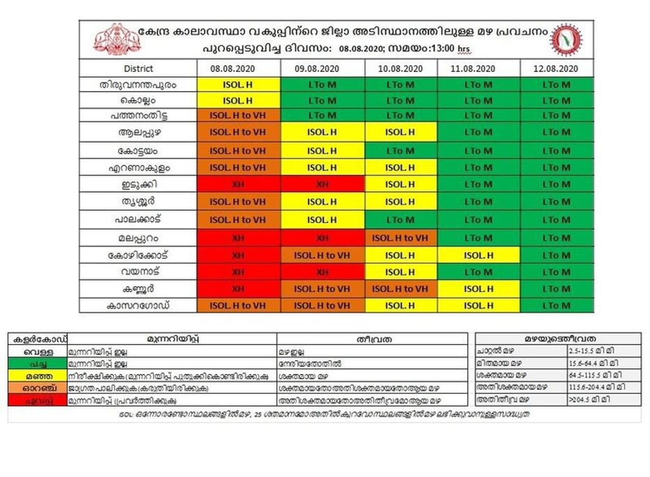 കേന്ദ്രത്തിന്റെ റിപ്പോർട്ട് പ്രകാരം കേരളത്തിൽ ഈ സീസണിൽ ഏറ്റവും ഉയർന്ന മഴ ലഭിച്ചത് വടകരയിലാണ് (327 മി.മീ). സംസ്ഥാനത്ത് ഇടുക്കി, വയനാട്, മലപ്പുറം ജില്ലകളിൽ നാളെ റെഡ് അലർട്ട് പ്രഖ്യാപിച്ചിട്ടുണ്ട്. അഞ്ച് ജില്ലകളിൽ ഇന്ന് തീവ്രമഴയുണ്ടാകുമെന്ന് കാലാവസ്ഥ നീരീക്ഷണകേന്ദ്രം അറിയിച്ചിട്ടുണ്ട്.