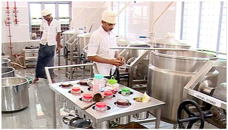 ഒറ്റനോട്ടത്തില് ഫൈവ് സ്റ്റാര് ഹോട്ടലിലെ അടുക്കളയെന്ന് തോന്നും. സാമ്പാറും അവിയലും ഉണ്ടാക്കാൻ പ്രത്യേകം യന്ത്രങ്ങള്. പച്ചക്കറി കഴുകാനും അരിയാനും അത്യാധുനിക മെഷീൻ. നൂറു തേങ്ങ ചിരകിയെടുക്കാന് വെറും അരമണിക്കൂര് മതി.