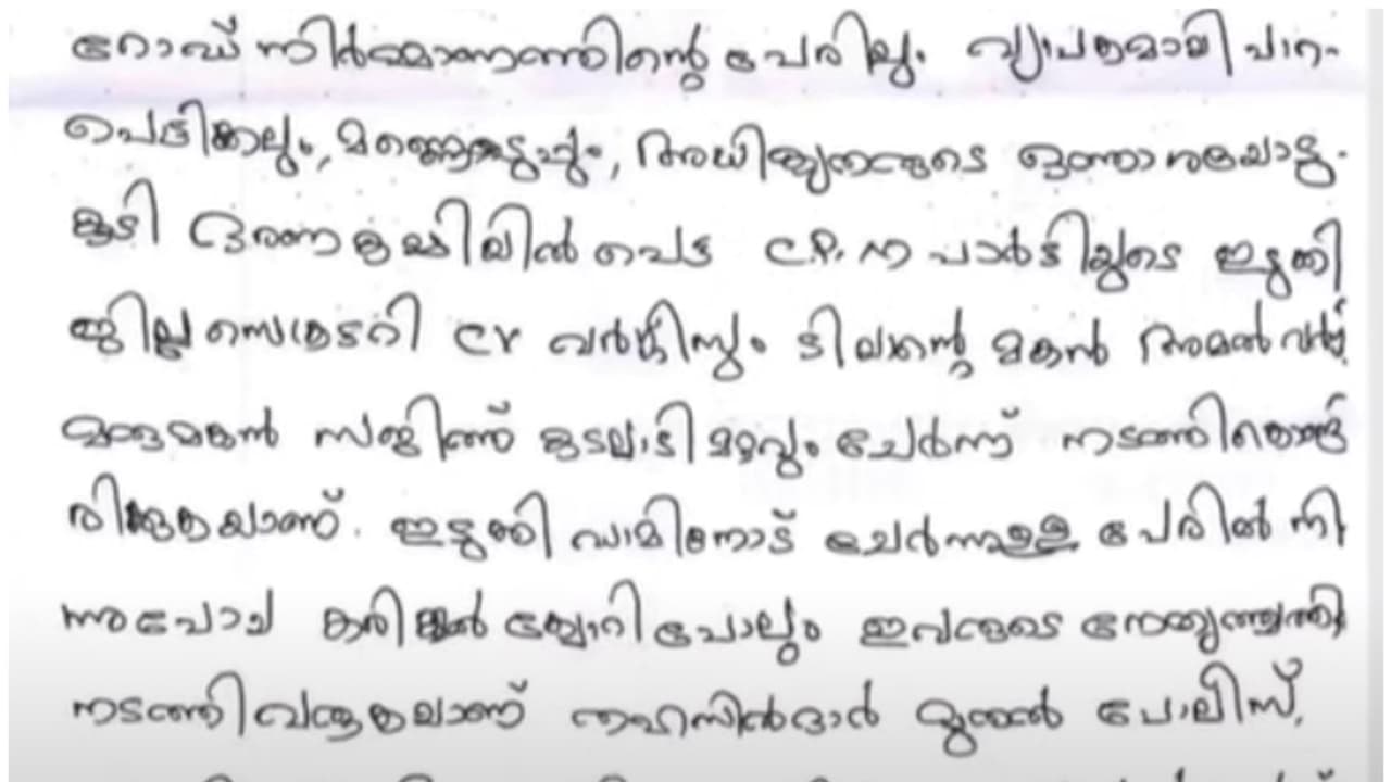 സിപിഎം സംസ്ഥാന സെക്രട്ടറിക്ക് ഉൾപ്പെടെ ഈ പരാതിയുടെ പകര്പ്പ് അയച്ചിട്ടുണ്ട്. തങ്കമണി പൊലീസ് സ്റ്റേഷൻ പരിധിയില് വരുന്ന പല ഭാങ്ങളിലും അനധകൃത പാറ പൊട്ടിക്കല് നടക്കുന്നുണ്ട്. ഇതിന് പൊലീസും രാഷ്ട്രീയക്കാരും ഒത്താശ ചെയ്യുന്നുണ്ട്. ഇക്കാര്യങ്ങൾ വ്യക്തമായി അന്വേഷിക്കണമെന്നാണ് പരാതിയിൽ പറയുന്നത്.