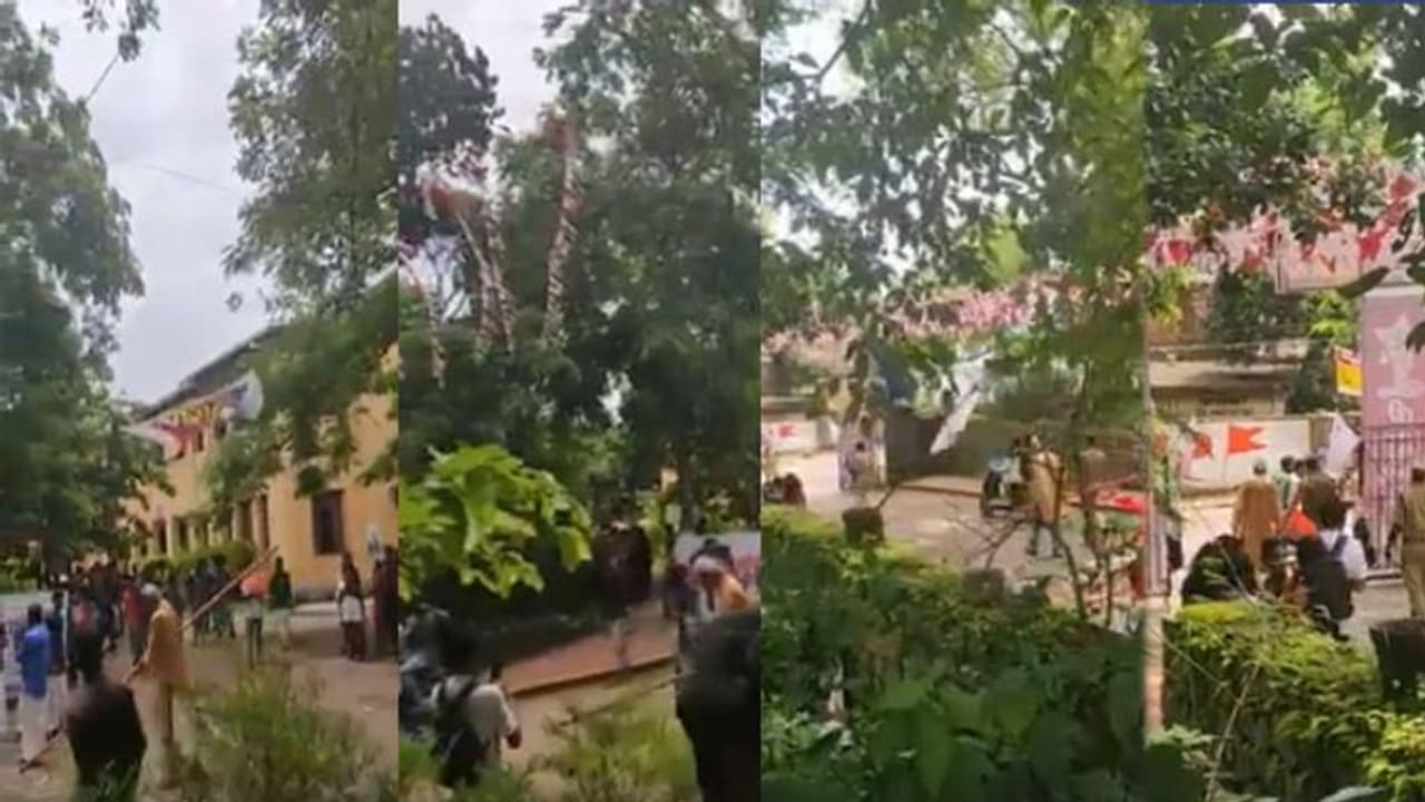 പ്രിന്സിപ്പാള് എബിവിപി കൊടിമരം നീക്കിയ ദൃശ്യങ്ങള് സമൂഹമാധ്യമങ്ങളില് വൈറലായിരുന്നു. കൊടിമരം ക്യാപസിന് പുറത്തെത്തിച്ച് തിരികെ നടന്നുവരുന്ന പ്രിന്സിപ്പാളിനെ വിദ്യാര്ത്ഥികള് സ്വീകരിക്കുന്നതും പുറത്തുവന്ന ദൃശ്യങ്ങളില് വ്യക്തമായിരുന്നു.