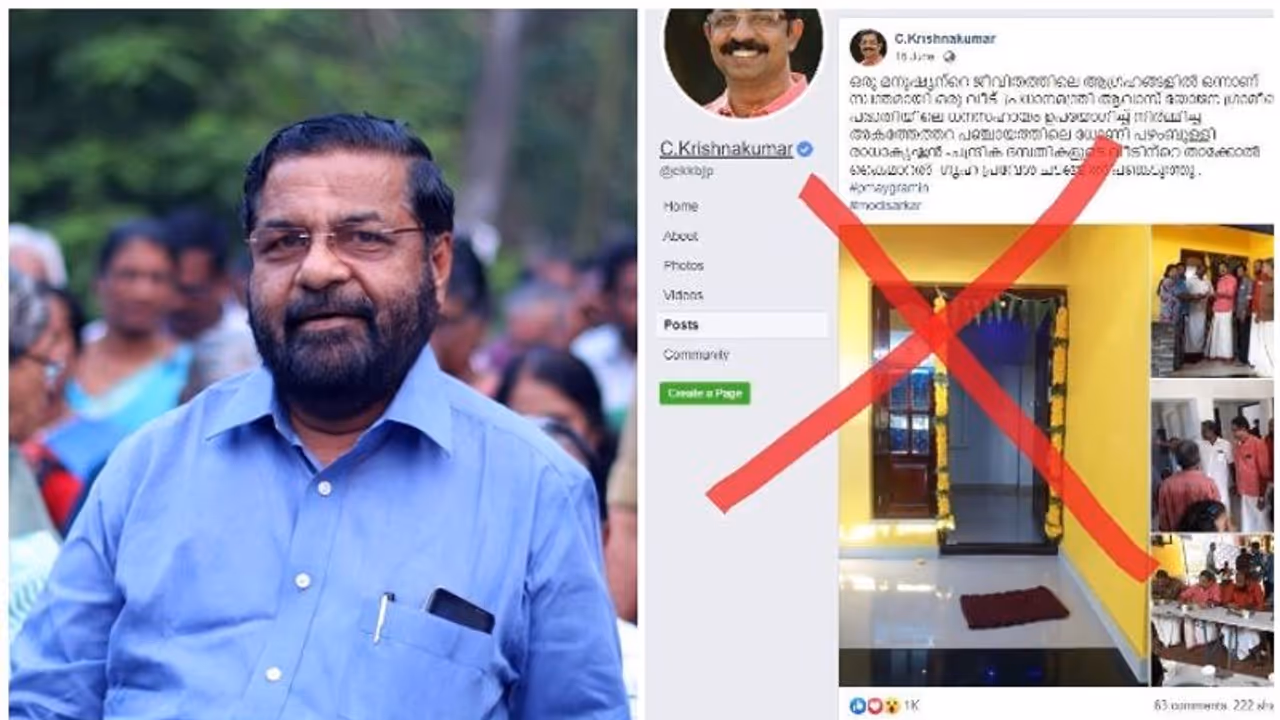 സഹകരണ വകുപ്പിന്റെ നാല് ലക്ഷം രൂപയോടൊപ്പം മുഖ്യമന്ത്രിയുടെ ദുരിതാശ്വാസ നിധിയിൽ നിന്നുള്ള വിഹിതവും ചേർത്ത് നിർമ്മിച്ച വീട് പ്രധാനമന്ത്രി ആവാസ് യോജനയിൽ നിർമ്മിച്ചതാണെന്ന് പ്രചരിപ്പിച്ചതിനെതിരെ മന്ത്രി രംഗത്ത്
