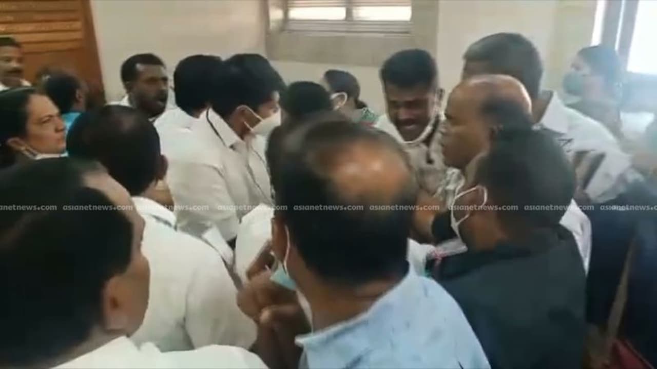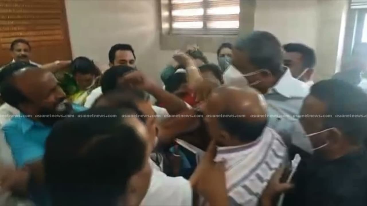 കൊച്ചി: കളമശ്ശേരി നഗരസഭയിൽ (Kalamassery Municipality) ഭരണ പ്രതിപക്ഷ കൗൺസിലർമാർ തമ്മിൽ കയ്യാങ്കളി. മുൻ കൗൺസിൽ യോഗത്തിന്റെ മിനുട്സ് കിട്ടാൻ വൈകിയതിനെ ചൊല്ലി ഇടത് കൗൺസിലർമാർ യോഗത്തിൽ ബഹളം വെക്കുകയായിരുന്നു. എന്നാൽ ബഹളത്തിനിടെ അജണ്ട പൂർത്തികരിച്ച് കൗൺസിൽ യോഗത്തിൽ നിന്ന് ചെയർപേഴ്സൺ (Chairperson) അടക്കം ഭരണ കൗൺസിലർമാർ ഇറങ്ങിപ്പോകാൻ നോക്കിയതോടെ കയ്യാങ്കളി ആകുകയായിരുന്നു.
