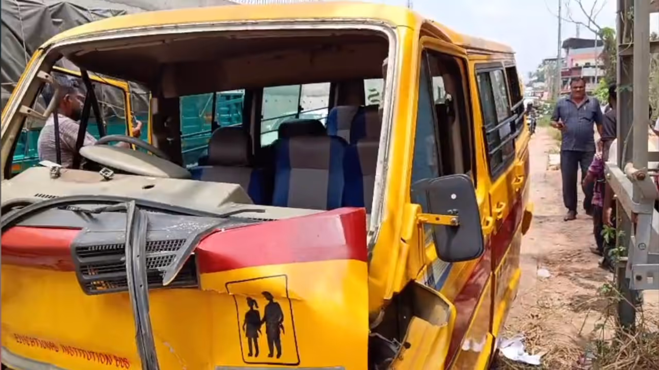 തിരുവനന്തപുരം കല്ലമ്പലത്ത് നിർത്തിയിട്ടിരുന്ന ക്രെയിനിൽ സ്കൂൾ ബസ് ഇടിച്ച് അപകടം. അയിരൂർ എംജിഎം സ്കൂളിലെ ബസാണ് ഇടിച്ചത്