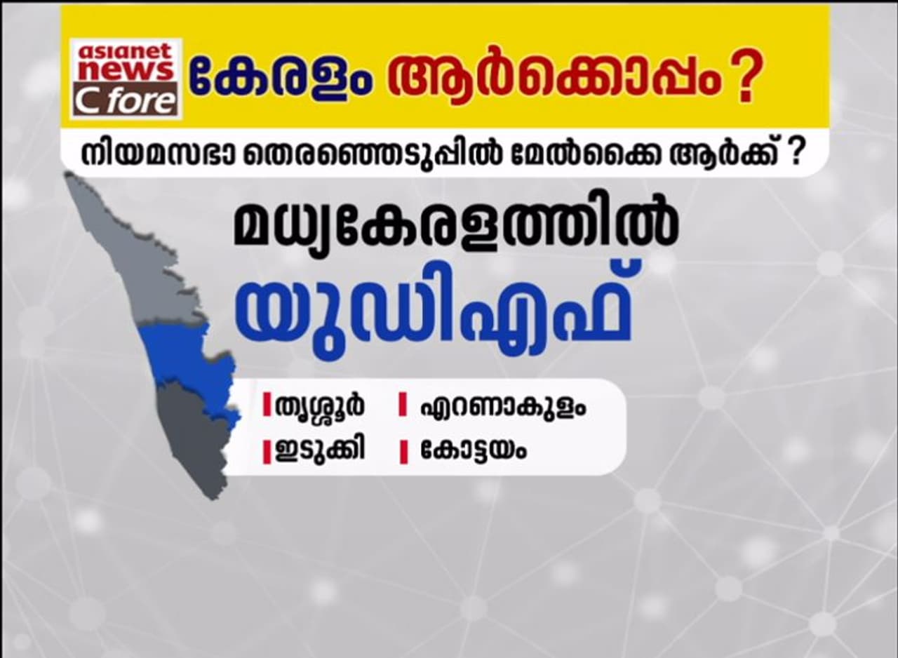മധ്യകേരളത്തിൽ 41 മണ്ഡലങ്ങളെയാണ് ഉൾപ്പെടുത്തിയത്. തൃശ്ശൂരിലെ 13, എറണാകുളത്തെ 14, ഇടുക്കി അഞ്ച്, കോട്ടയം ഒൻപത് മണ്ഡലങ്ങളുമാണ് ഈ പട്ടികയിലുള്ളത്. ഇതിൽ 17 മുതൽ 19 സീറ്റുകൾ വരെ ഇടതുമുന്നണിക്ക് നേട്ടമുണ്ടാകും. എന്നാൽ യുഡിഎഫ് ആയിരിക്കും കൂടുതൽ സീറ്റുകൾ നേടുക. 22 മുതൽ 24 സീറ്റുകൾ വരെ നേടാനാവും. എൻഡിഎ പരമാവധി ഒരു സീറ്റ് മാത്രമേ ഈ മേഖലയിൽ നേടാനാവൂ. ഇടതുമുന്നണിയ്ക്ക് 39 ശതമാനം വോട്ട് വിഹിതവും യുഡിഎഫിന് 42 ശതമാനവും വോട്ട് വിഹിതം ഈ മണ്ഡലങ്ങളിൽ നിന്ന് ലഭിക്കും. എൻഡിഎയ്ക്ക് 18 ശതമാനം വോട്ടായിരിക്കും നേടാനാവുക.