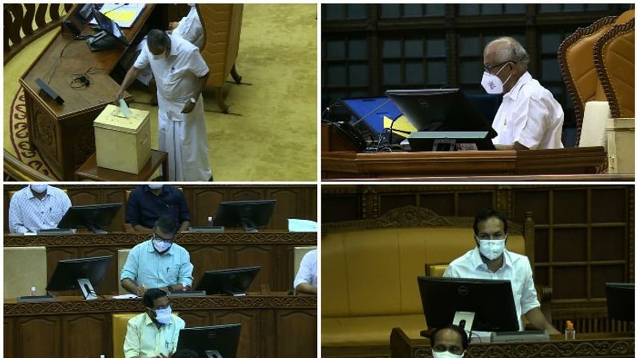 സഭാംഗങ്ങളെ ഇരിപ്പിടത്തിന്റെ ക്രമത്തിൽ സെക്രട്ടറി വിളിക്കുമ്പോൾ മുന്നോട്ട് വന്ന് ബാലറ്റ് പേപ്പറിൽ വോട്ട് രേഖപ്പെടുത്തി ബാലറ്റ് പെട്ടിയിൽ നിക്ഷേപിക്കുകയാണ് വേണ്ടത്. പേര് വിളിക്കുമ്പോൾ സഭയിൽ ഹാജരില്ലാത്ത അംഗങ്ങൾക്ക് വോട്ടെടുപ്പ് അവസാനിക്കുന്നതിന് മുമ്പ് സഭയിലെത്തിയാൽ വോട്ട് ചെയ്യാൻ അവസരം ഉണ്ടാകും. മുഖ്യമന്ത്രി പിണറായി വിജയനാണ് ആദ്യ വോട്ട് രേഖപ്പെടുത്തിയത്.