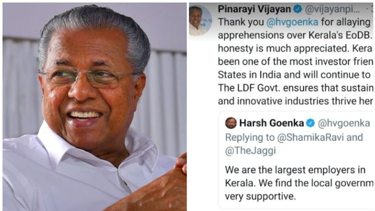 തിരുവനന്തപുരം: രാജ്യത്തെ ഏറ്റവും മികച്ച വ്യവസായ സൗഹൃദ സംസ്ഥാനങ്ങളില് ഒന്നാണ് കേരളമെന്ന് മുഖ്യമന്ത്രി പിണറായി വിജയന്. വ്യവസായി ഹര്ഷ് ഗോയങ്കെയുടെ അഭിനന്ദന ട്വീറ്റിന് മറുപടിയായാണ് മുഖ്യമന്ത്രിയുടെ ട്വീറ്റ്. വ്യവസായ സൗഹൃദ നയം എല്ഡിഎഫ് തുടരുമെന്നും വ്യവസായങ്ങളുടെ സുസ്ഥിരമായ നിലനില്പ്പ് സര്ക്കാര് ഉറപ്പാക്കുമെന്നും പിണറായി വിജയന് ട്വീറ്റില് വ്യക്തമാക്കി. കേരളത്തിലെ ഏറ്റവും വലിയ തൊഴില്ദാതാക്കള് തങ്ങളാണെന്നും സര്ക്കാറില് നിന്ന് നല്ല പിന്തുണയാണ് ലഭിക്കുന്നതെന്നുമാണ് വ്യവയായി ഹര്ഷ് ഗോയങ്ക ട്വീറ്റ് ചെയ്തത്.