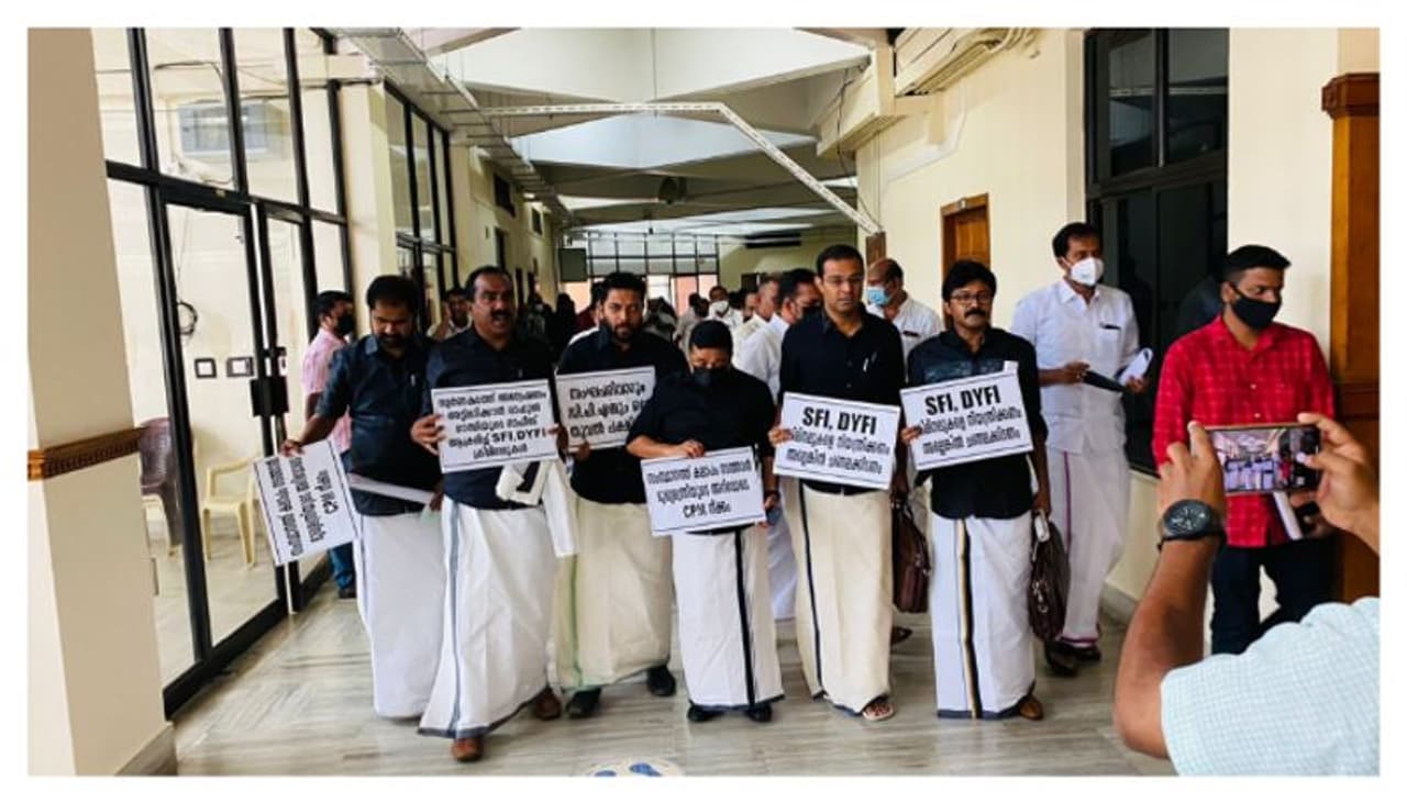 തിരുവനന്തപുരം : പതിനഞ്ചാം കേരള നിയമസഭയുടെ അഞ്ചാം സമ്മേളനത്തി്നറെ തുടക്കം തന്നെ പ്രതിഷേധത്തിൽ. നിയമസഭയിൽ കറുത്ത ഷർട്ടും കറുത്ത മാസ്ക്കും ധരിച്ചാണ് പ്രതിപക്ഷത്തെ യുവ എംഎൽഎമാർ എത്തിയത്. ഷാഫി പറമ്പിൽ, അൻവർ സാദത്ത്, സനീഷ് കുമാർ അടക്കമുള്ള നേതാക്കളാണ് കറുപ്പണിഞ്ഞെത്തിയത്. നേരത്തെ മുഖ്യമന്ത്രി പിണറായി വിജയൻ പങ്കെടുത്ത പരിപാടികളിൽ കറുത്ത മാസ്കിനും വസ്ത്രത്തിനുമുണ്ടായ 'അപ്രഖ്യാപിത വിലക്ക്' വലിയ ചർച്ചയായിരുന്നു. ഇതിന് പിന്നാലെയാണ് യുവ എംഎൽഎമാർ കറുത്ത വസ്ത്രങ്ങൾ ധരിച്ച് സഭയിലെത്തിയത്. രാഹുൽ ഗാന്ധിയുടെ ഓഫീസാക്രമണത്തിൽ പ്ലക്കാഡുകളും ബാനറുകളുമുയർത്തി പ്രതിപക്ഷം പ്രതിഷേധിച്ചു.