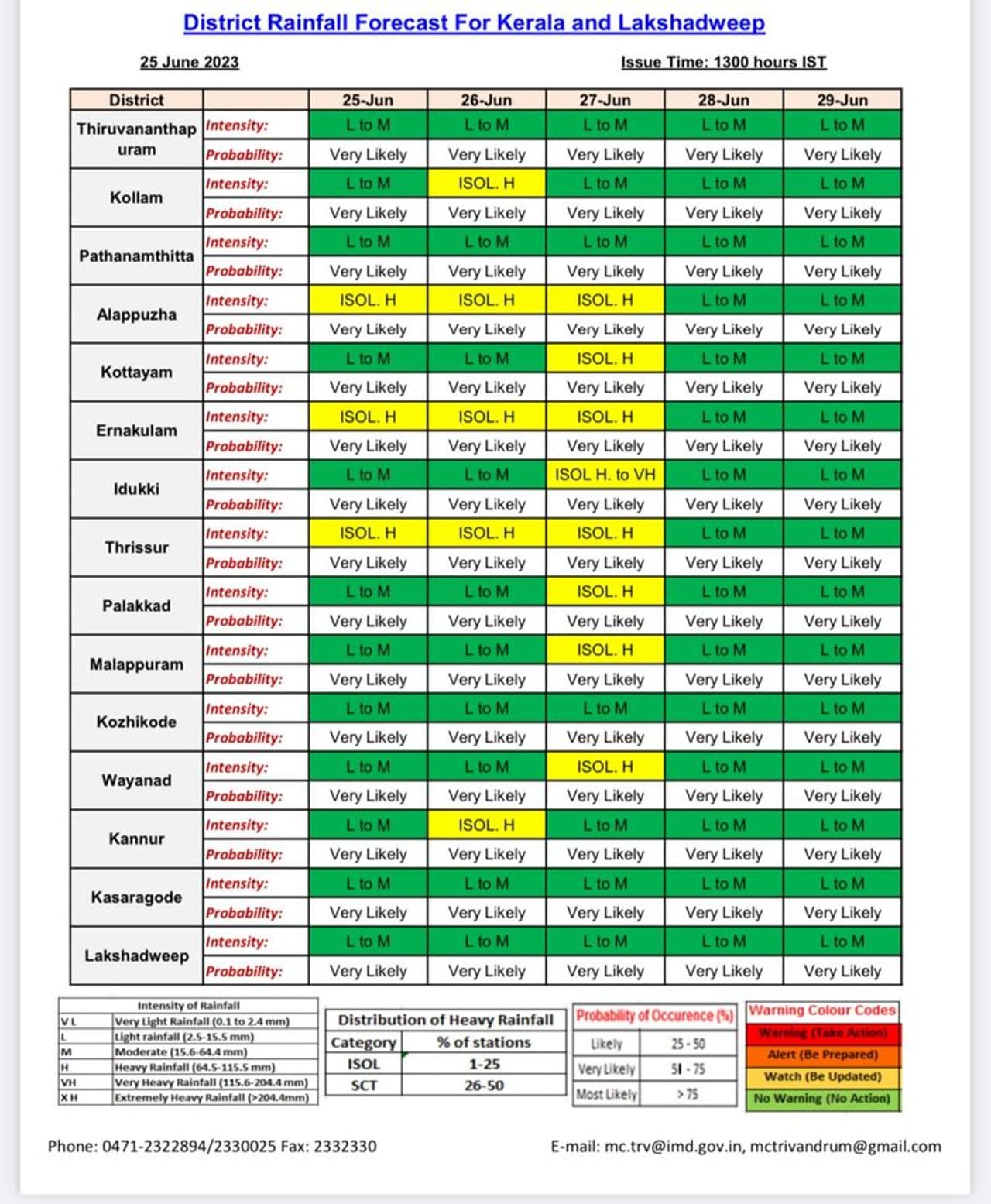 സ്വാദീനഫലമായി ഈ ദിവസങ്ങളിൽ കാലവർഷം മെച്ചപ്പെടും. കാലാവസ്ഥാ വിഭാഗത്തിന്റെ മഴ മുന്നറിയിപ്പുകളിൽ മാറ്റമുണ്ട്. കേരളത്തിൽ മൂന്ന് ജില്ലകളിൽ ഇന്ന് യെല്ലോ അലർട്ടാണ്. ആലപ്പുഴ, എറണാകുളം, തൃശൂർ ജില്ലകളിലാണ് ഇന്ന് യെല്ലോ അലർട്ട്. നാളെ അഞ്ച് ജില്ലകളിലും, മറ്റന്നാൾ 8 ജില്ലകളിലും യെല്ലോ അലർട്ടാണ്.