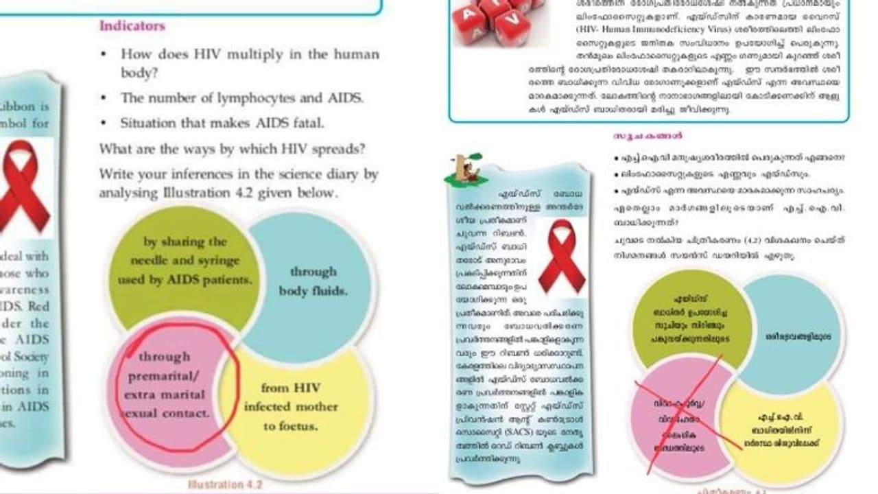 പാഠപുസ്തകത്തിന്റെ 2016 എഡിഷന്റെ അറുപതാം പേജിലാണ് വിവാദ ഭാഗം. എച്ച്ഐവി പകരുന്ന വഴികളേതെല്ലാം എന്ന് ചോദ്യത്തിനുള്ള മറുപടിയായി പുസ്തകം വിശദീകരിക്കുന്നത് നാല് വഴികളാണ്. 'എയിഡിസ് രോഗികൾ ഉപയോഗിച്ച സൂചിയും സിറിഞ്ചും ഉപയോഗിക്കുന്നതിലൂടെ, എച്ച്ഐവി ബാധിതയായ അമ്മയിൽ നിന്ന് കുഞ്ഞിലേക്ക്, ശരീര സ്രവങ്ങളിലൂടെ, വിവാഹേതര, വിവാഹ പൂർവ ലൈംഗിക ബന്ധത്തിലൂടെ.'