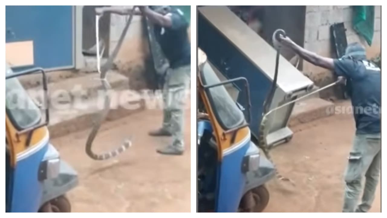 ഭയന്ന് പുറത്തേക്കോടിയ കുടുംബാംഗങ്ങൾ വനംവകുപ്പിനെ വിവരമറിയിച്ചു. മുണ്ടക്കയത്ത് നിന്നുള്ള വനംവകുപ്പിന്റെ ആർആർടി സംഘം എത്തിയാണ് രാജവെമ്പാലയെ പിടികൂടിയത്.