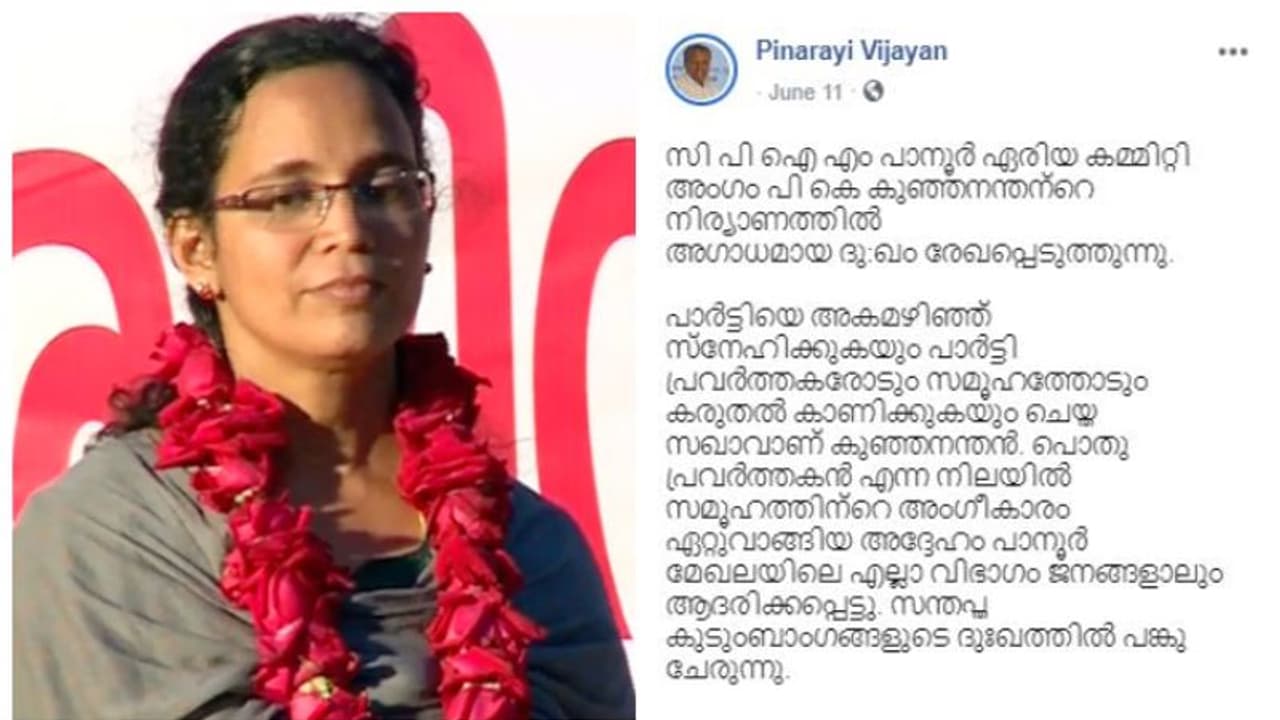 'സമൂഹത്തോട് കരുതല് കാണിച്ച സഖാവ്'; കുഞ്ഞനന്തന്റെ നിര്യാണത്തിൽ അനുശോചിച്ച് മുഖ്യമന്ത്രി