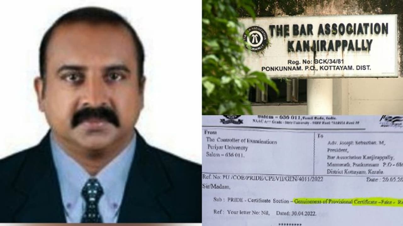 തമിഴ്നാട്ടിലെ പെരിയാര് സര്വകലാശാലയില് നിന്ന് ബിബിഎ. പിന്നെ ഭോപ്പാലിലെ ആര്കെഡിഎഫ് സര്വകലാശാലയില് നിന്ന് ത്രിവല്സര നിയമ ബിരുദവും നേടിയെന്ന് അവകാശപ്പെട്ടാണ് പൊന്കുന്നം സ്വദേശി അഫ്സല് ഹനീഫ് ബാര് കൗണ്സിലില് അഭിഭാഷകനായി എന് റോള് ചെയ്ത് പൊന്കുന്നം കോടതിയില് പ്രാക്ടീസ് തുടങ്ങിയത്. എന്നാല് അഫ്സലിന്റെ ബിബിഎ സര്ട്ടിഫിക്കറ്റ് വ്യാജമാണെന്ന് പെരിയാര് സര്വകലാശാല തന്നെ വ്യക്തമാക്കി.