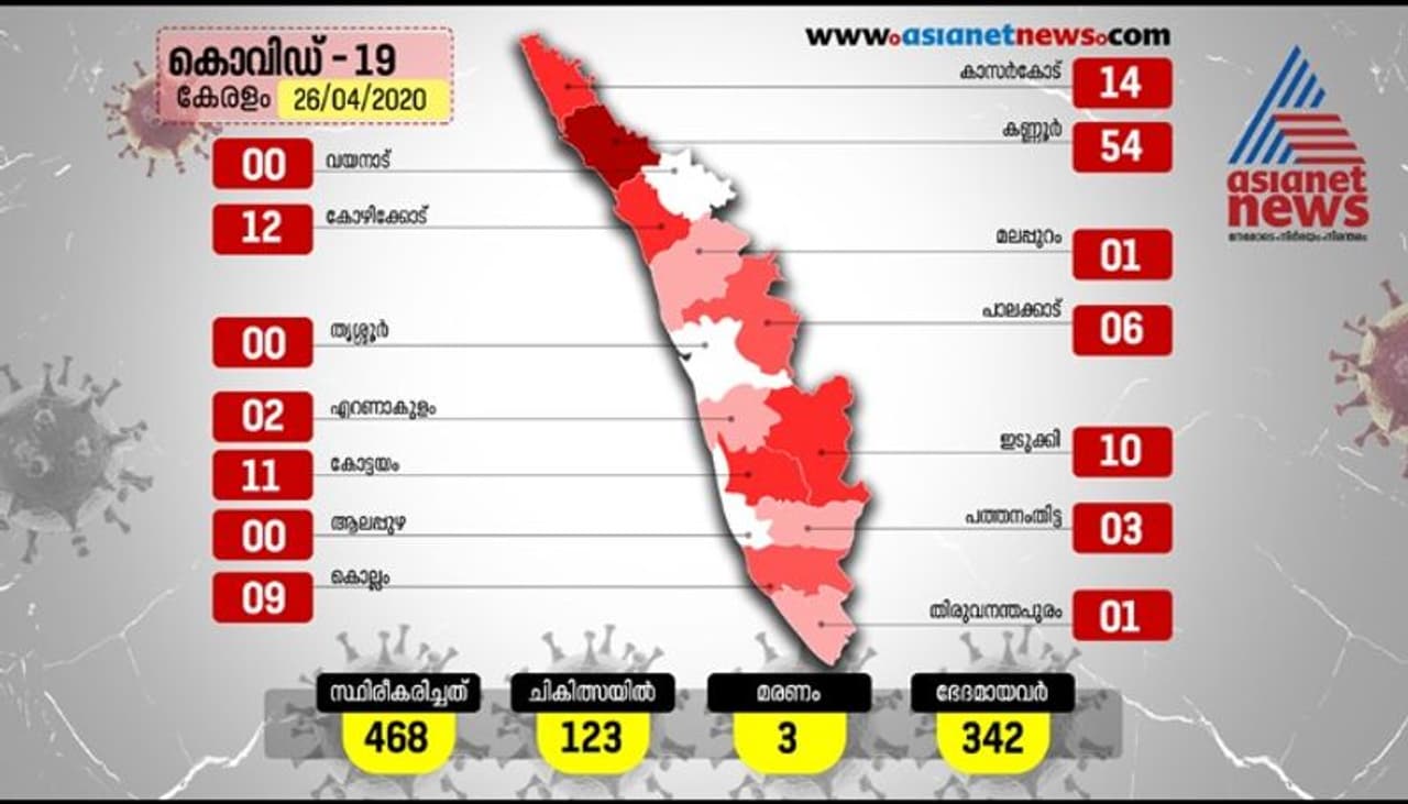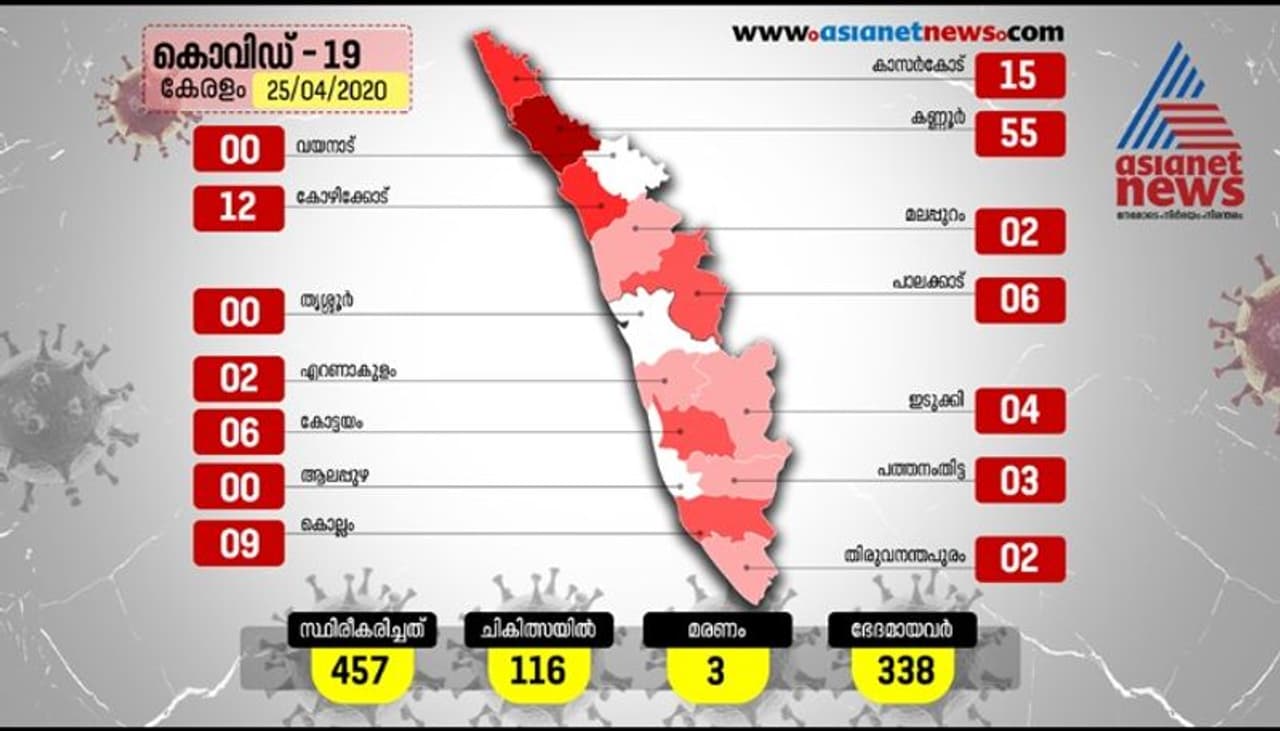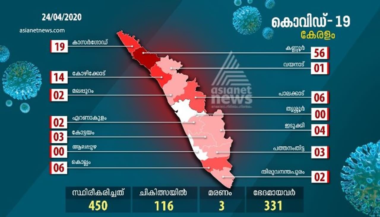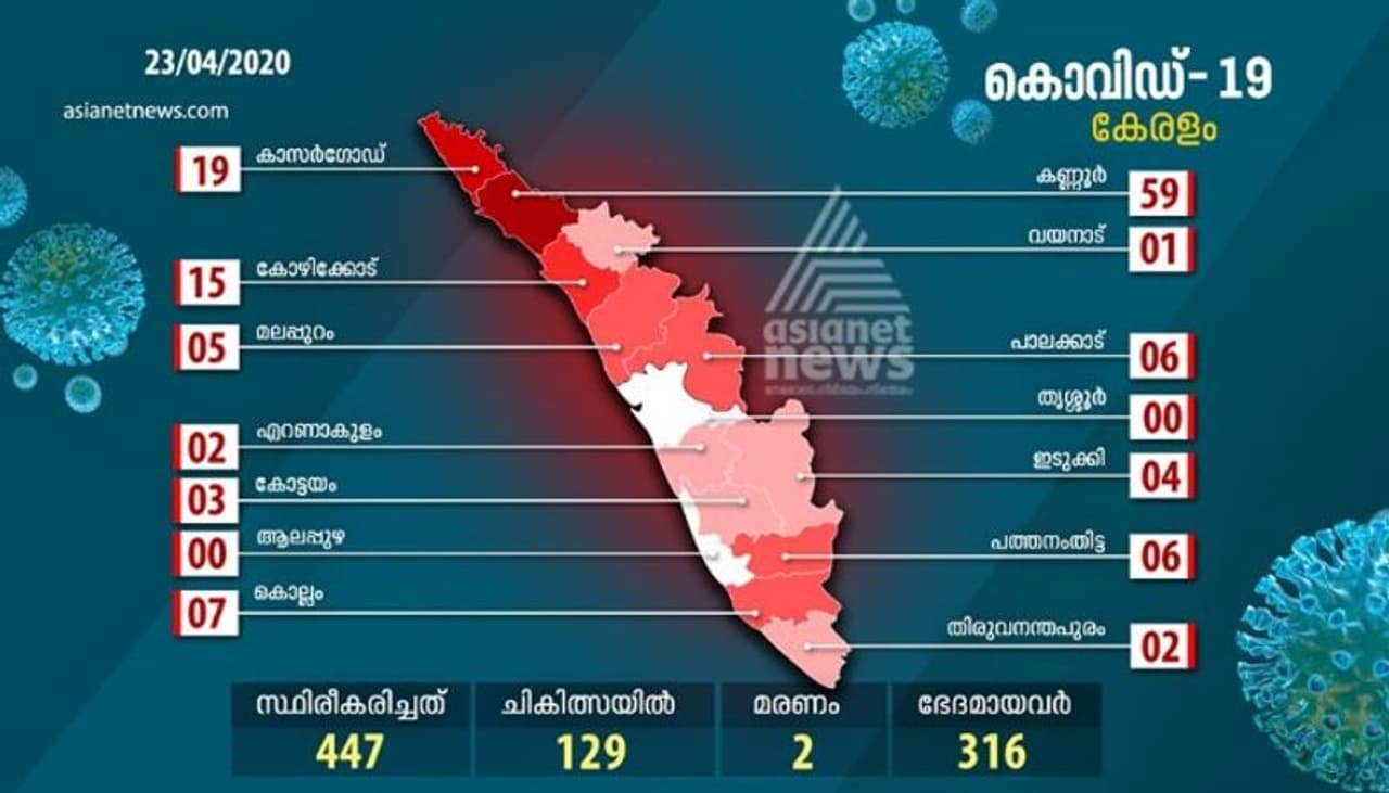 അതേസമയം, ഇന്ന് 13 പേർക്ക് കൂടി കൊവിഡ് സ്ഥിരീകരിച്ചതോടെ സംസ്ഥാനത്ത് ഇതുവരെ 481 പേർക്ക് രോഗം സ്ഥിരീകരിച്ചു. 123 പേർ ചികിത്സയിലാണ്. 20,301 പേരാണ് നിരീക്ഷണത്തിലുള്ളത്. 19,812 പേർ വീടുകളിലാണ്. 489 പേർ ആശുപത്രികളിലാണ്. ഇന്ന് മാത്രം 104 പേർ ആശുപത്രിയിലായി. 23,271 സാമ്പിളുകൾ പരിശോധനക്ക് അയച്ചു. 22,537 എണ്ണത്തിൽ രോഗബാധയില്ലെന്ന് ഉറപ്പാക്കി.