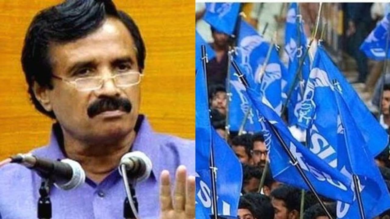 വിദ്യാഭ്യാസ മന്ത്രി സി രവീന്ദ്രനാഥിനെതിരായാണ് പ്രതിഷേധം ബാങ്ക് എംപ്ലോയീസ് ഫെഡറേഷൻ ഓഫ് ഇന്ത്യയുടെ പരിപാടിയിൽ പങ്കെടുക്കാനെത്തിയതായിരുന്നു മന്ത്രി